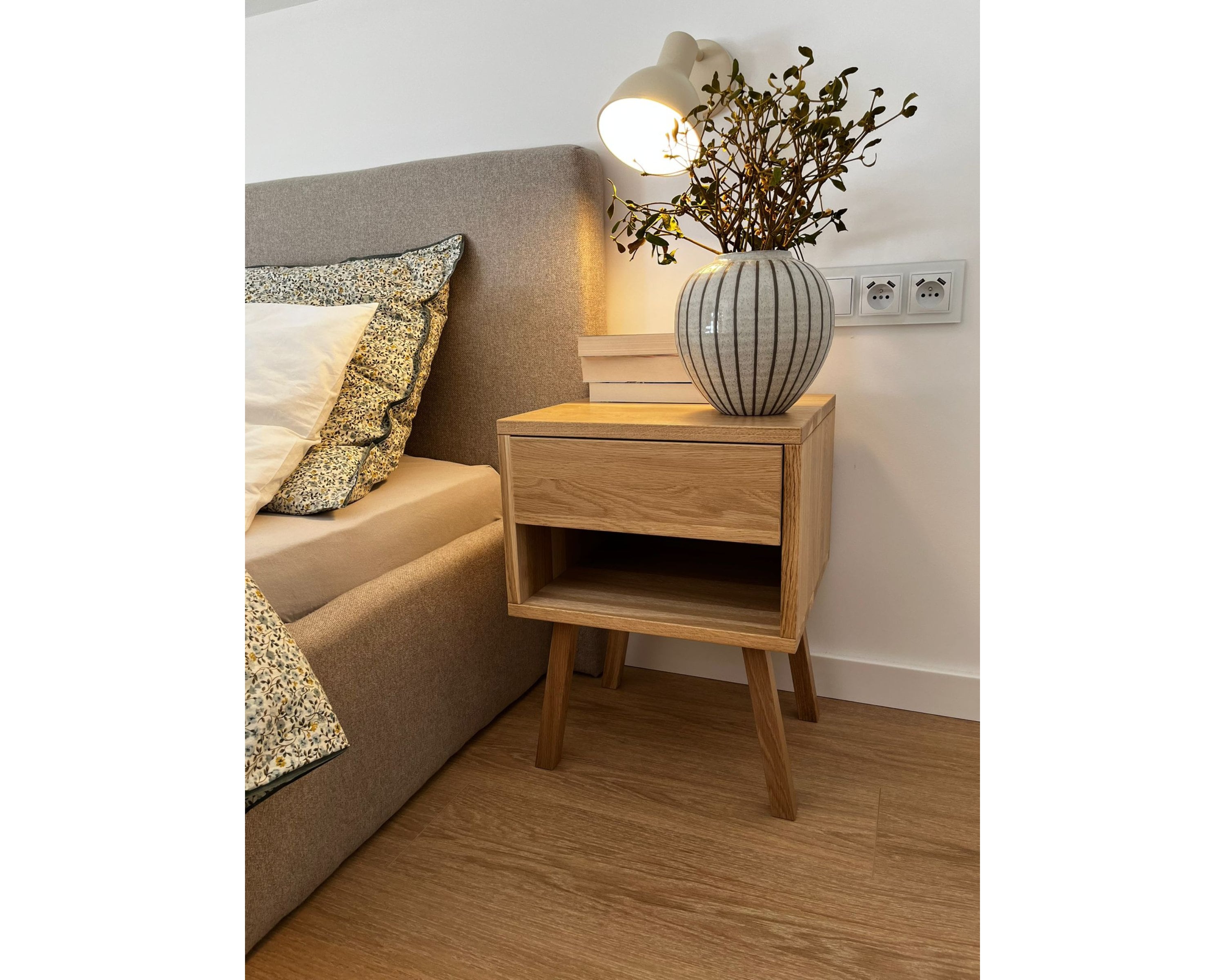 "This handmade oak nightstand combines functionality and timeless design. Crafted from solid oa...