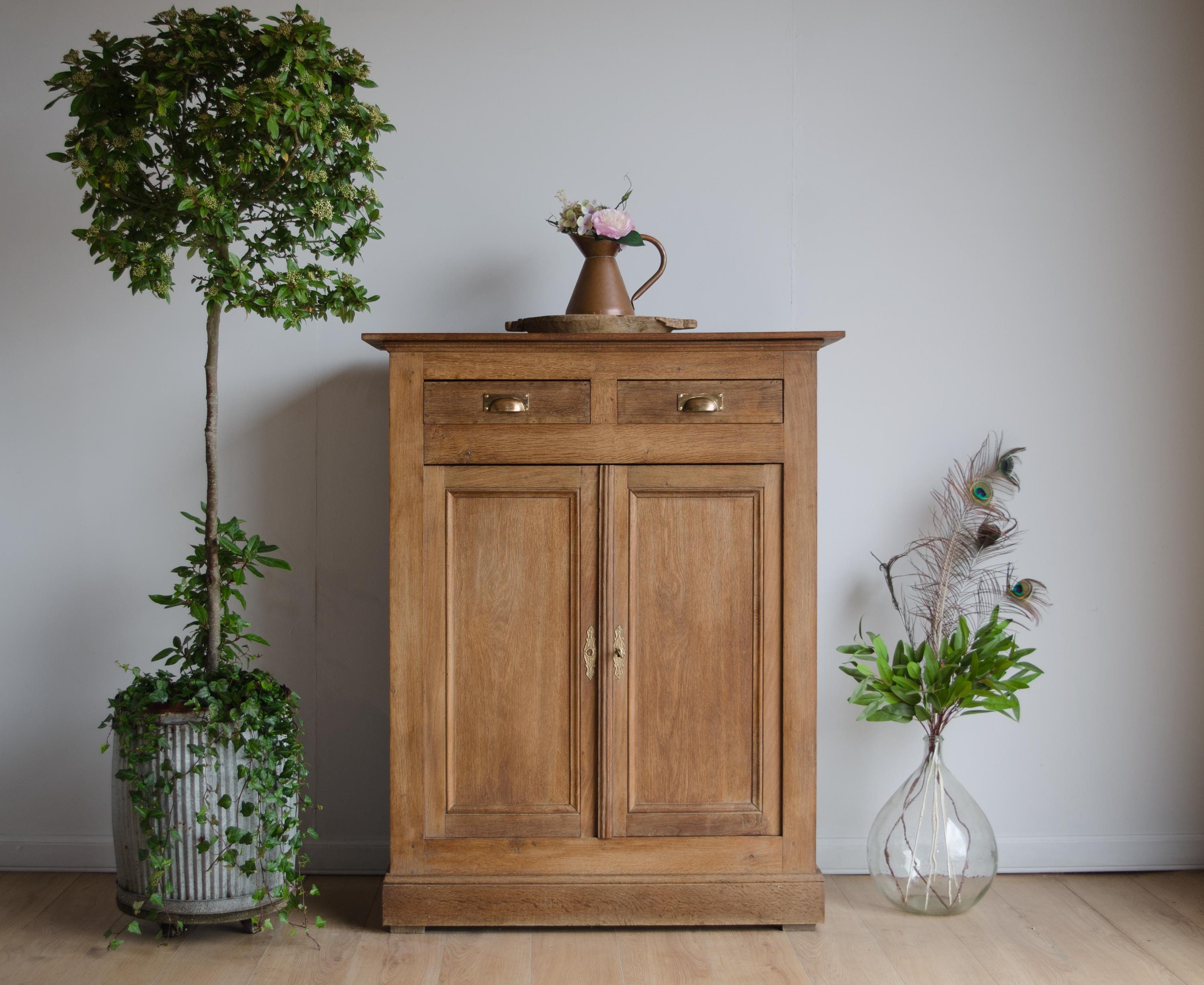 This is a beautiful French Parisian cabinet crafted in oak. This cupboard features 2 drawers above 2...