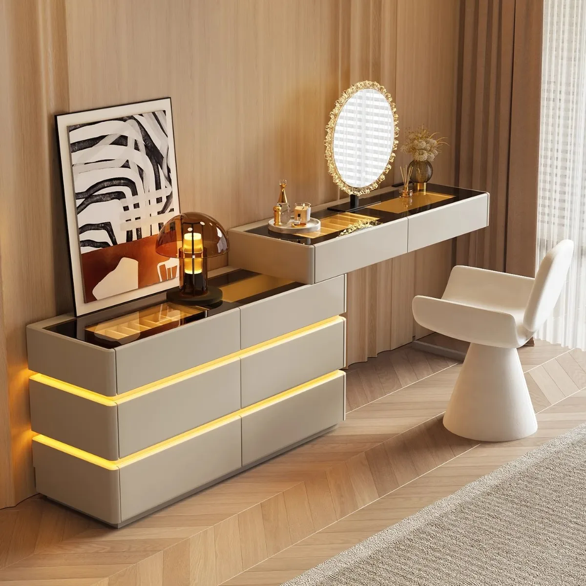 Nordic Solid Wood Dressers Bedroom Modern Dressing Table Drawer Integrated Home Small Apartment Make...