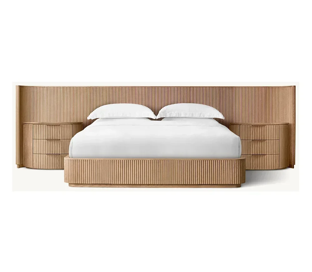 Luxury Modern Home Bedroom Furniture Solid Oak Wood Full King Queen Size Beds With Closed Bedside Ta...