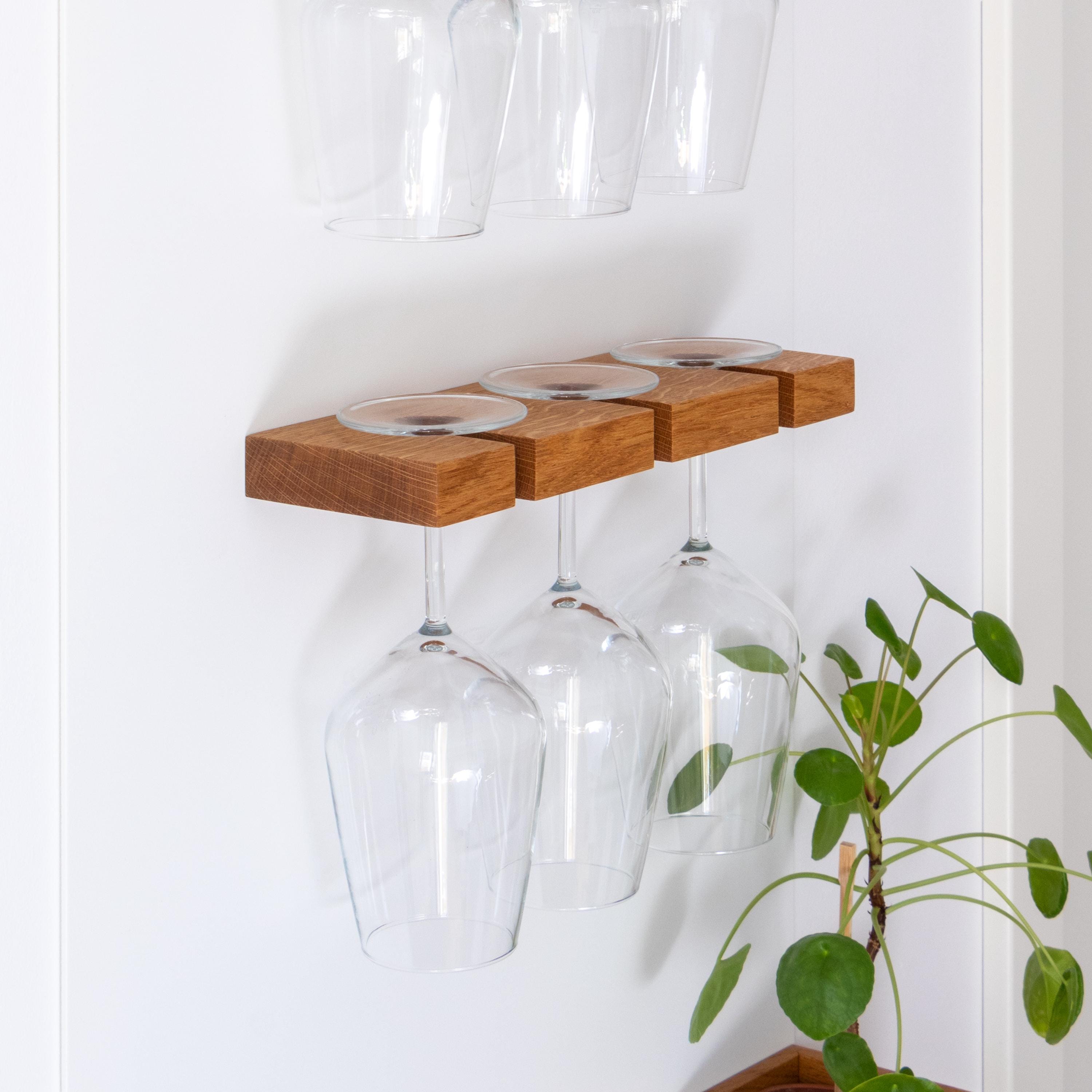 Solid Oak Magnetic Wine Glass Holder: Kitchen Wall Organization