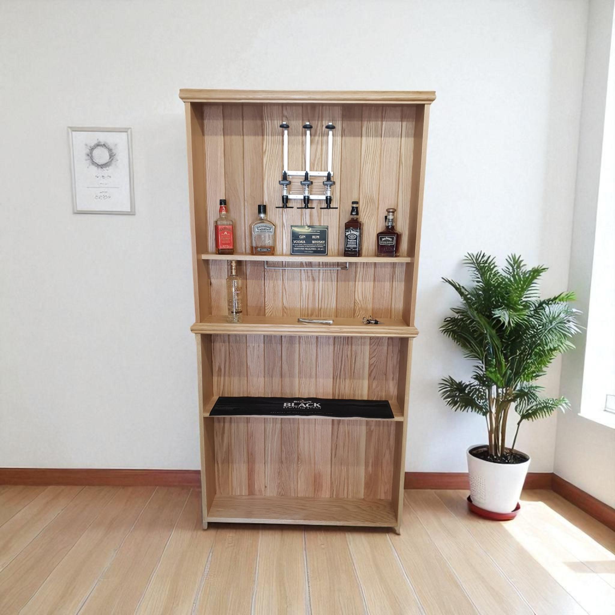 100% Solid Oak Home Bar Shelving Unit - With Optics & Wine Glass Rack | Fully Assembled Transfor...