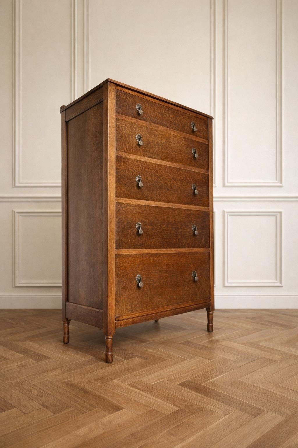 Antique Oak Chest of Drawers | Edwardian Tallboy | Solid Oak 5 Draw...