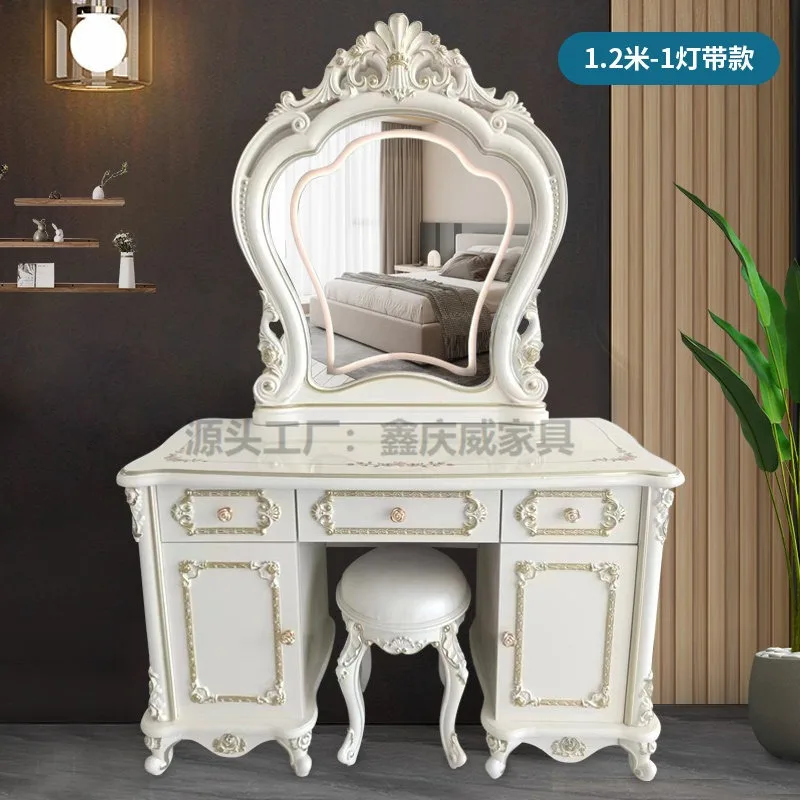 European dressing table with lamp, bedroom new ivory white small apartment mini modern dressing tabl...