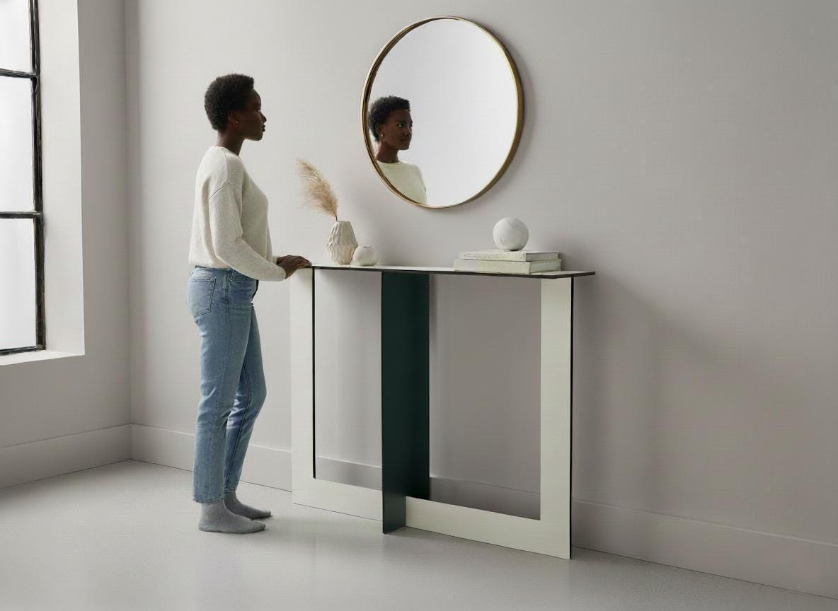 "Looking for a minimalist narrow console table that carries both conceptual depth and architect...