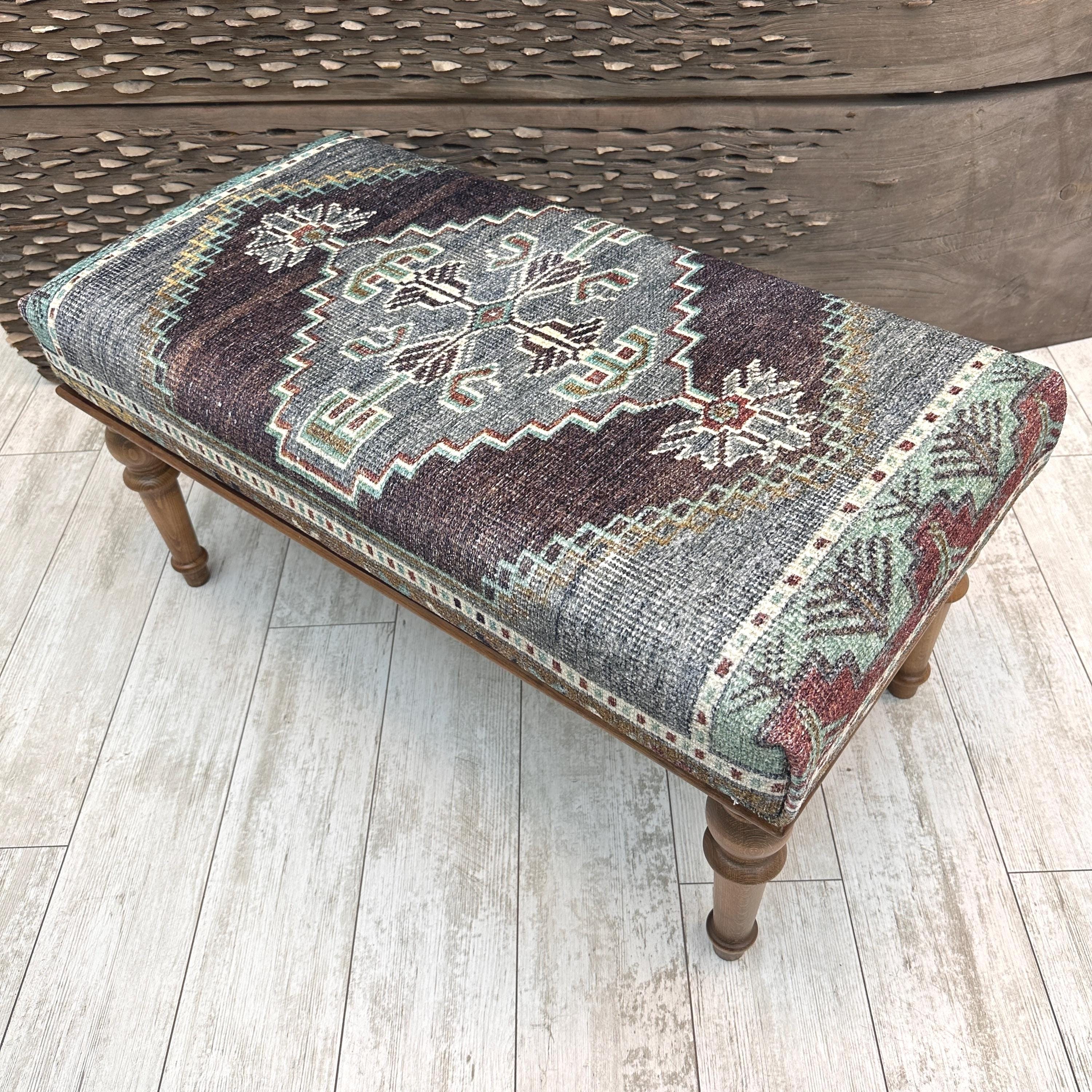 "Here is a handmade Ottoman Bench with oriental patterns. This is a handmade rug bench which al...