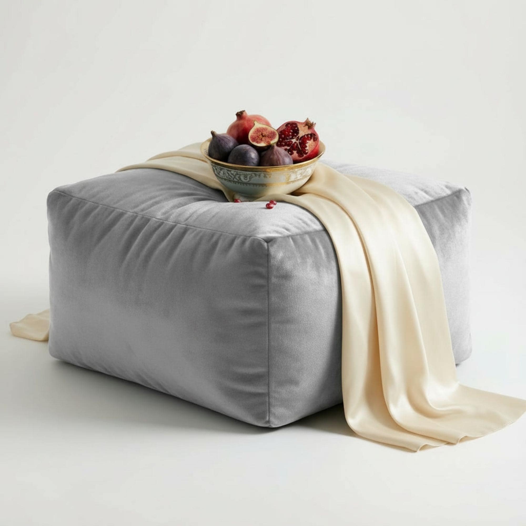 Bean Bag pouffe footstools Silver Grey Velvet : Rectangle Ottoman S...