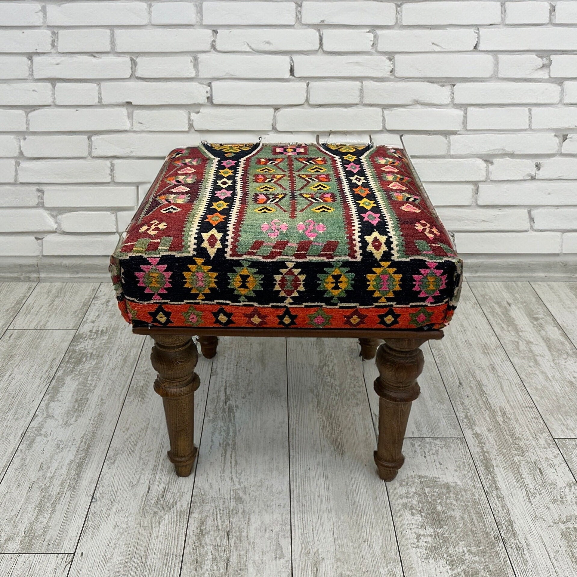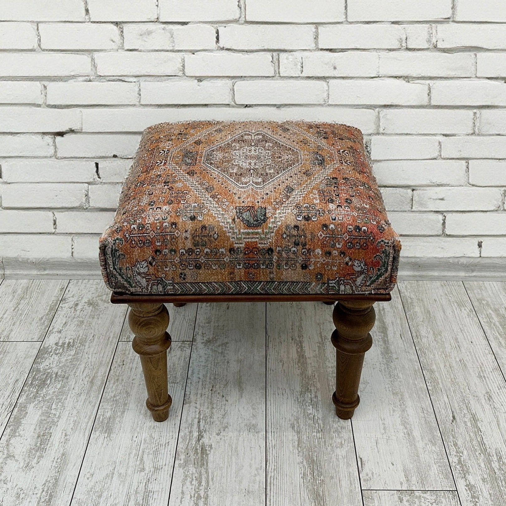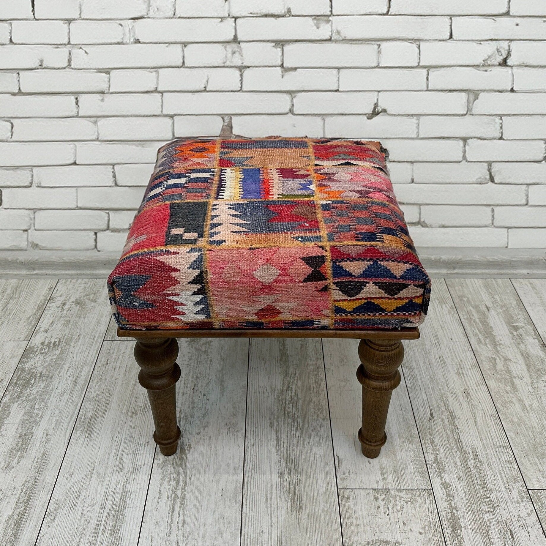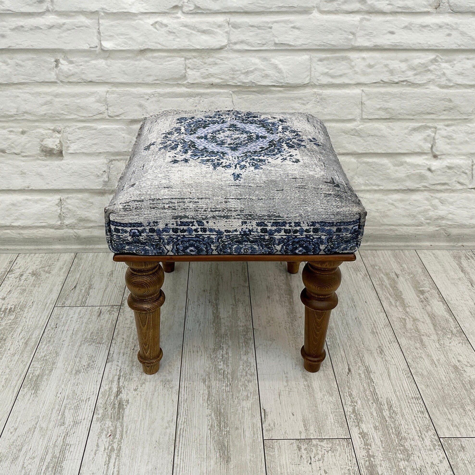 Handmade bench, Small ottoman, Accent Footstool, Eclectic Home Deco...