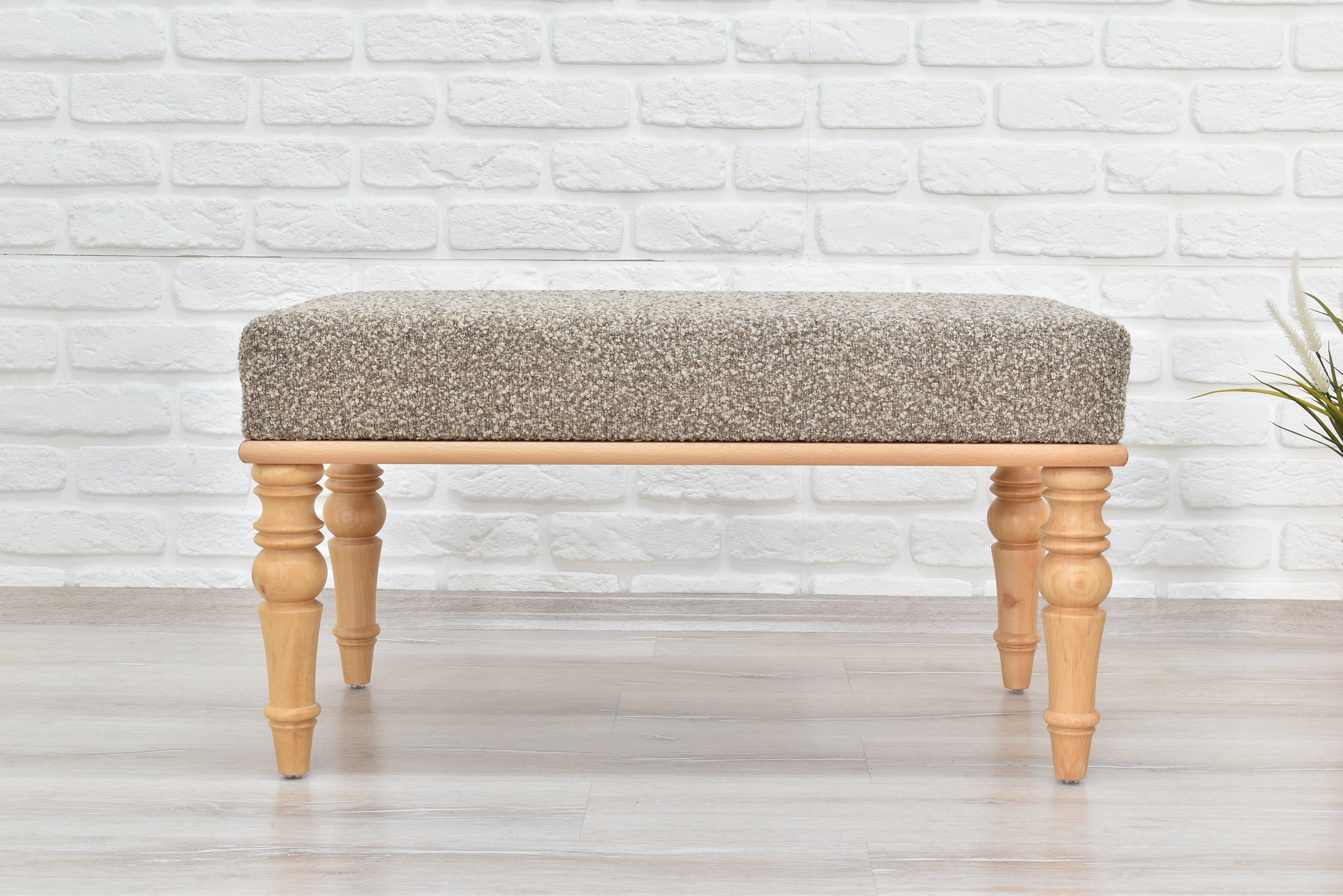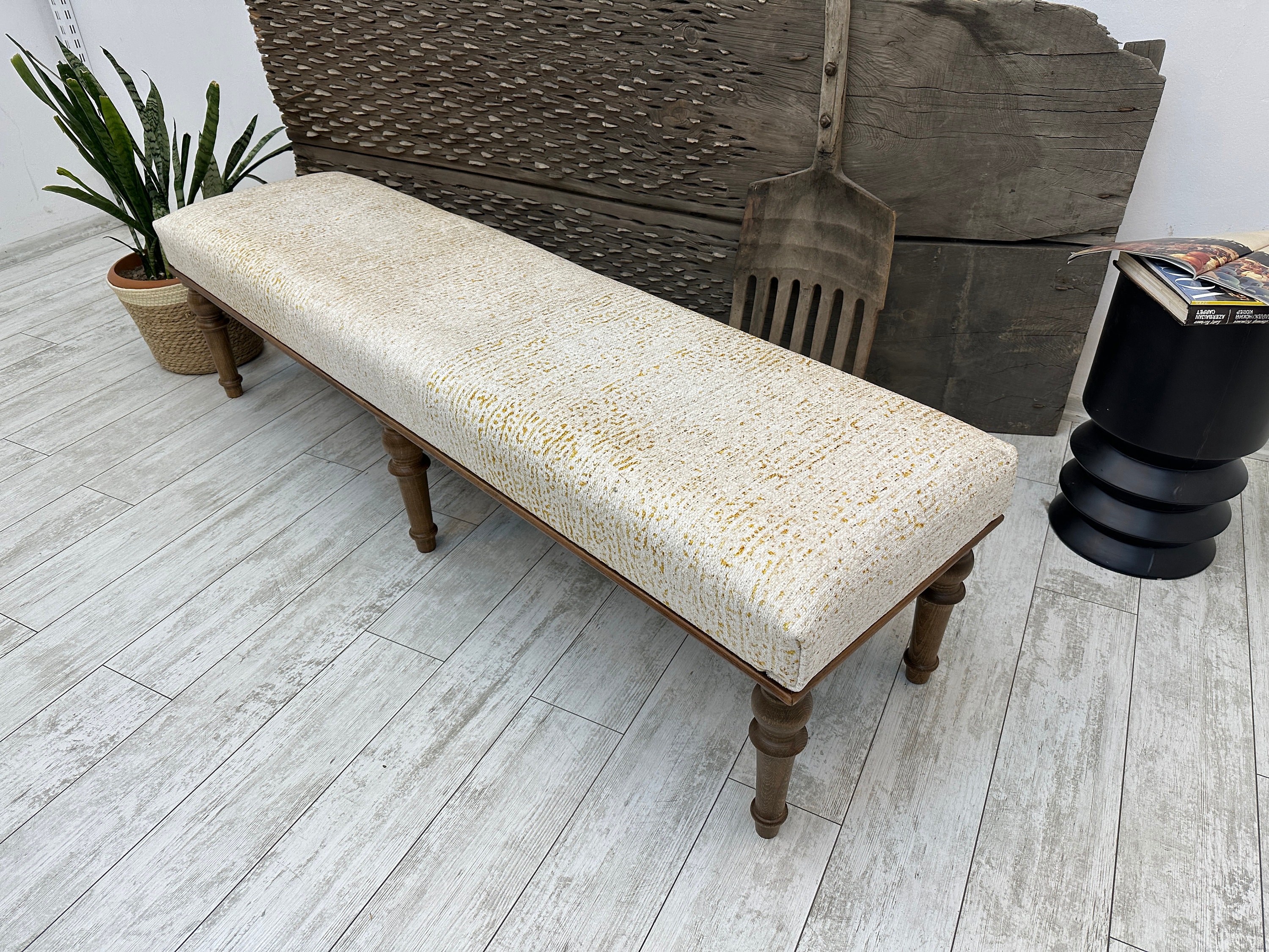 Bohemian Wood Bench, Piano Bench, Beige Bench, Boho Ottoman, Boho O...
