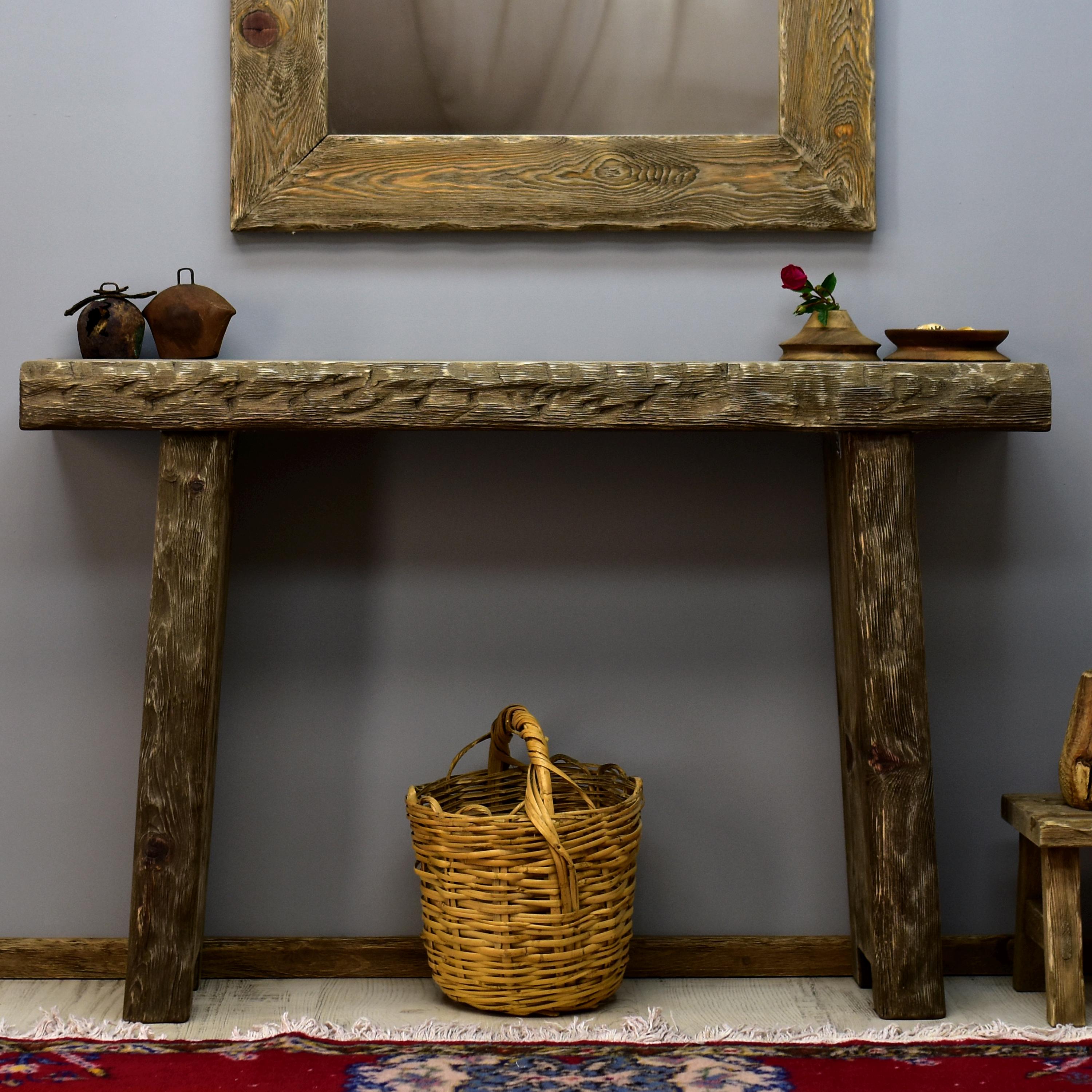Handmade Recycled Solid Wood Entrance Desk, Rustic Natural Live Edg...