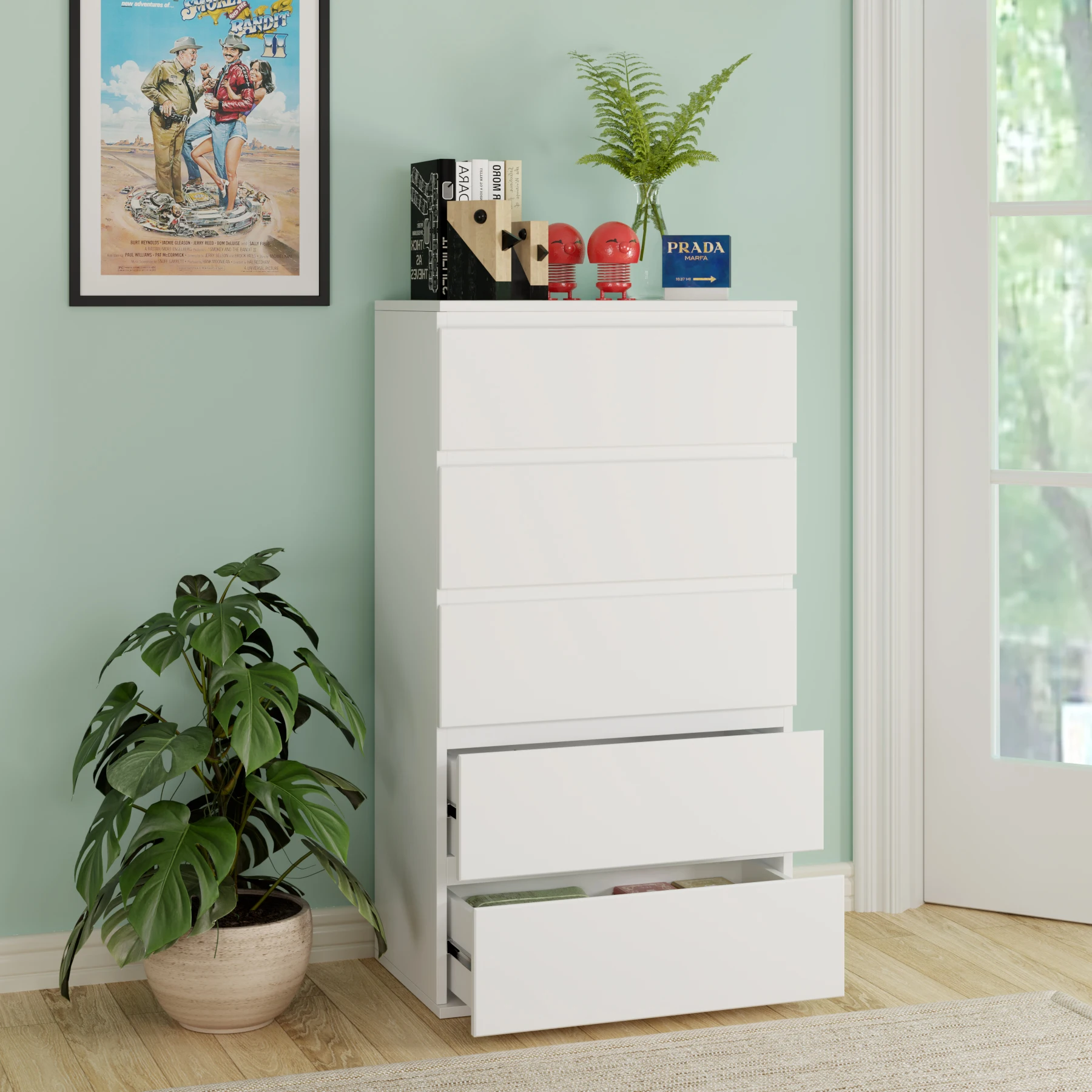 Getone White Chest of Drawers Bedroom, Tall Chest of Drawers with 5 Drawers 1 Doors, Bedroom Furnitu...