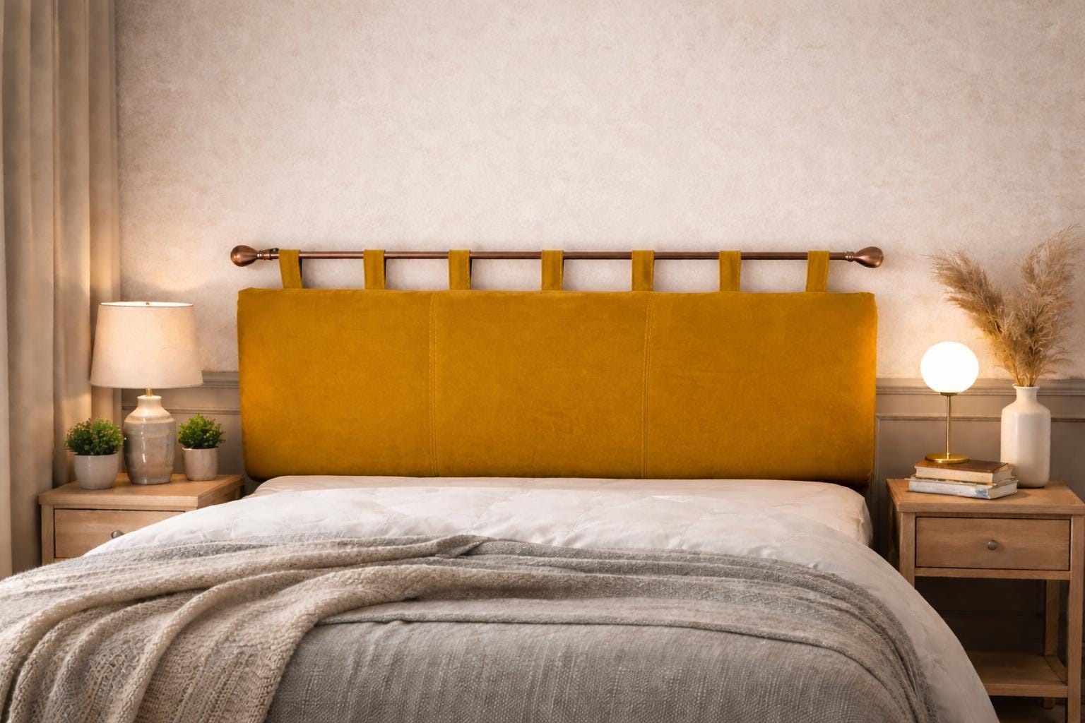 Transform your bedroom with this luxurious velvet headboard featuring elegant panelled design and so...