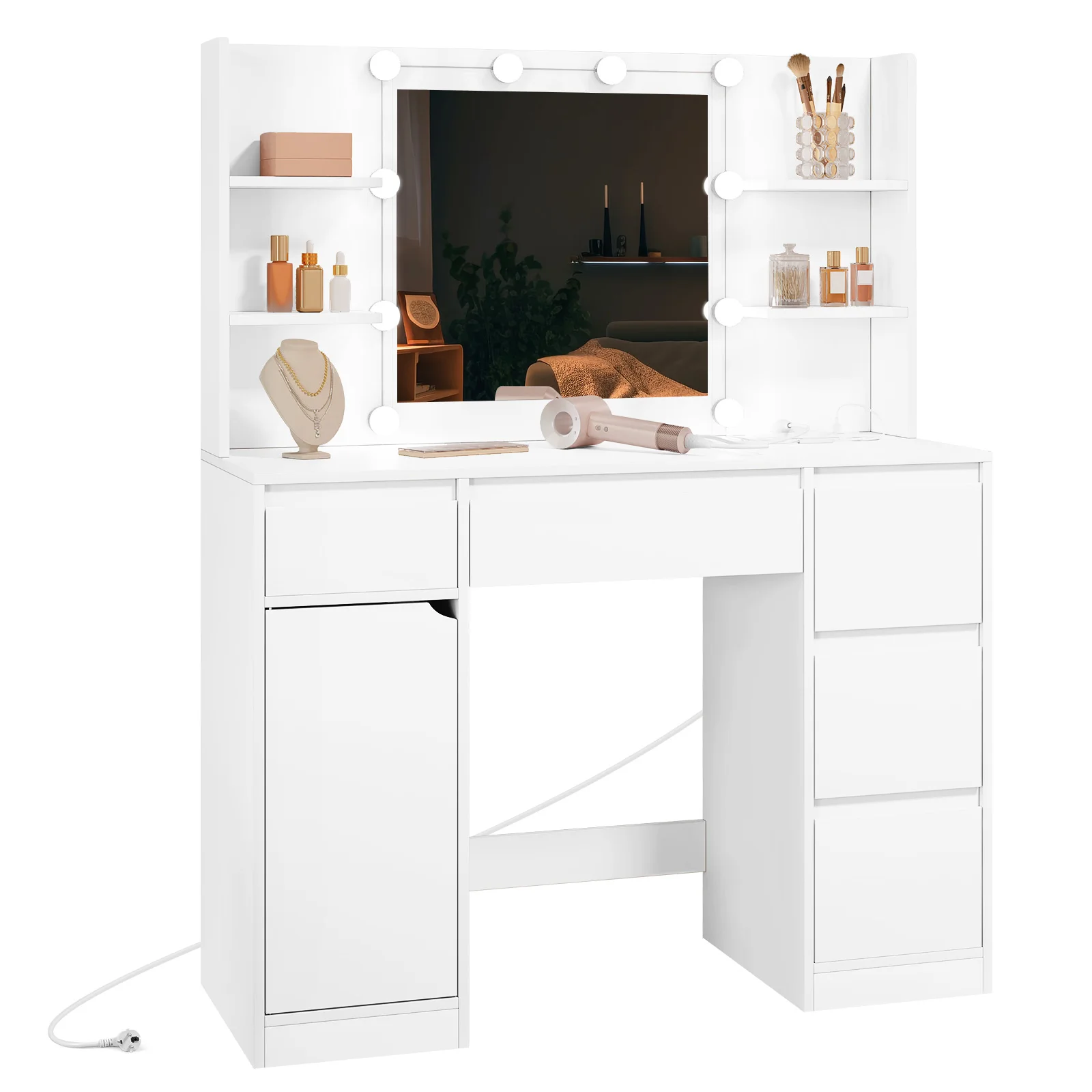 White Dressing Table Vanity with Mirror Lighting Socket Adjustable ...