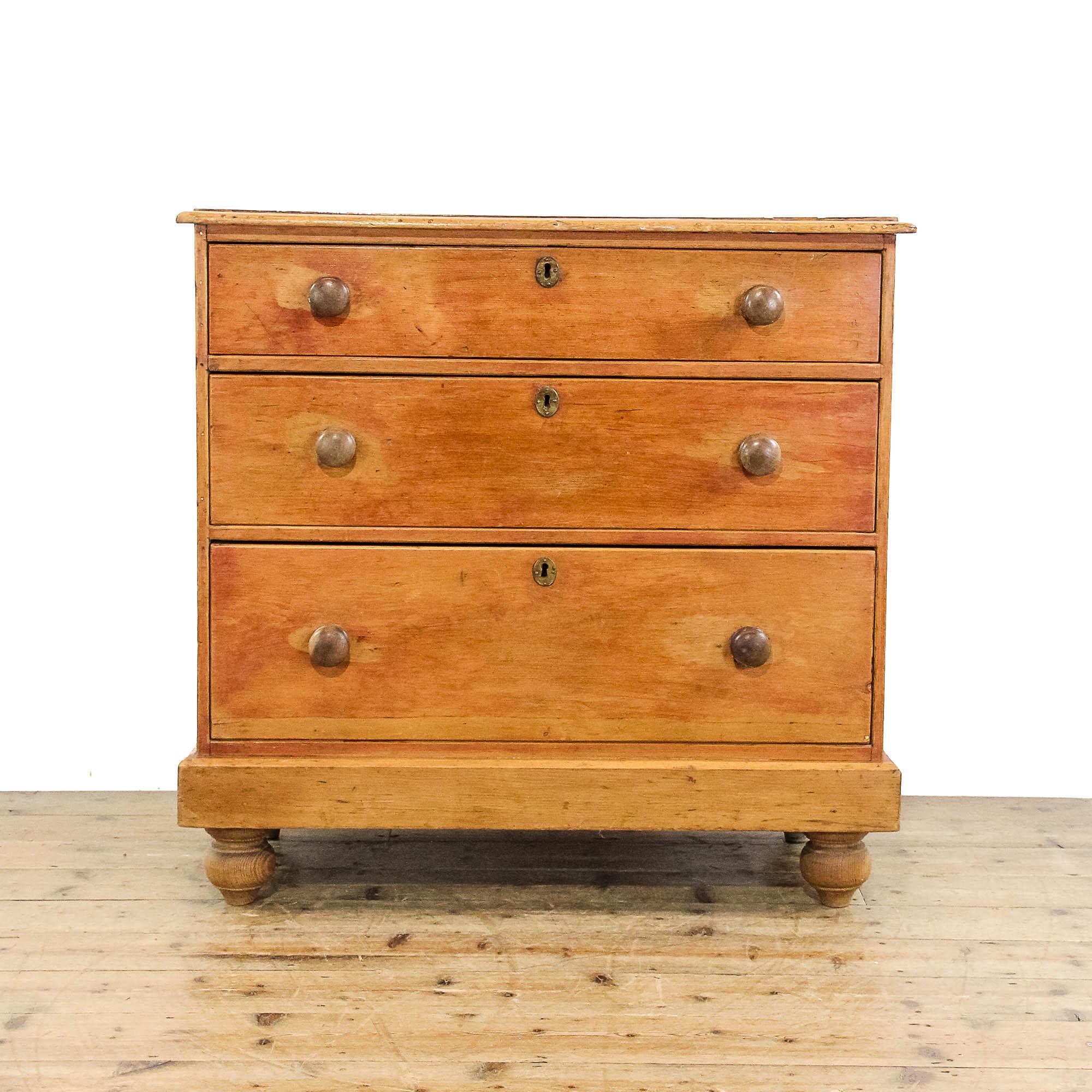 A neatly proportioned antique Victorian pine chest of drawers. This charming piece features three lo...