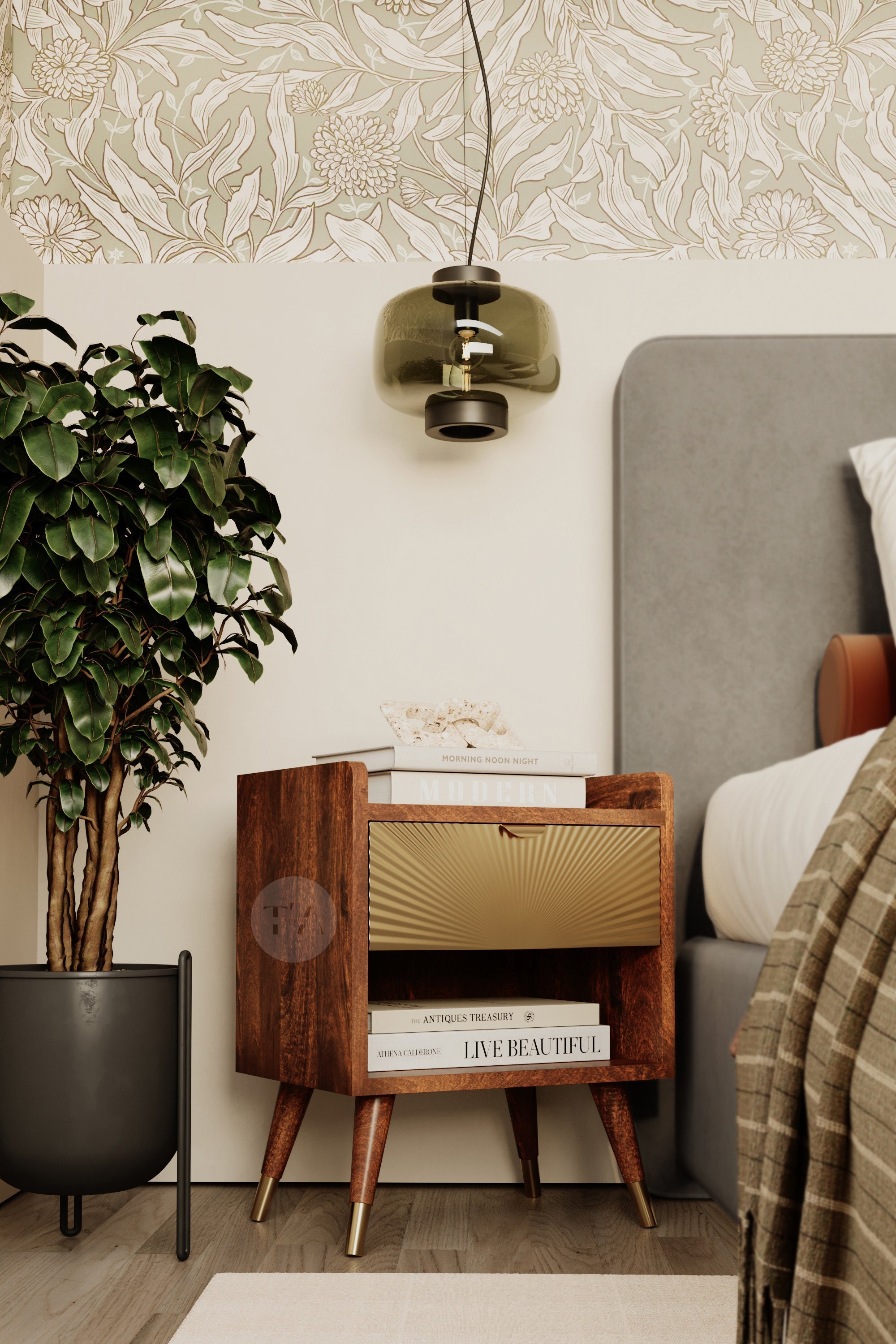 Our modern bedside table with 1 eye-catching gold drawer is the perfect nightstand, handmade from so...