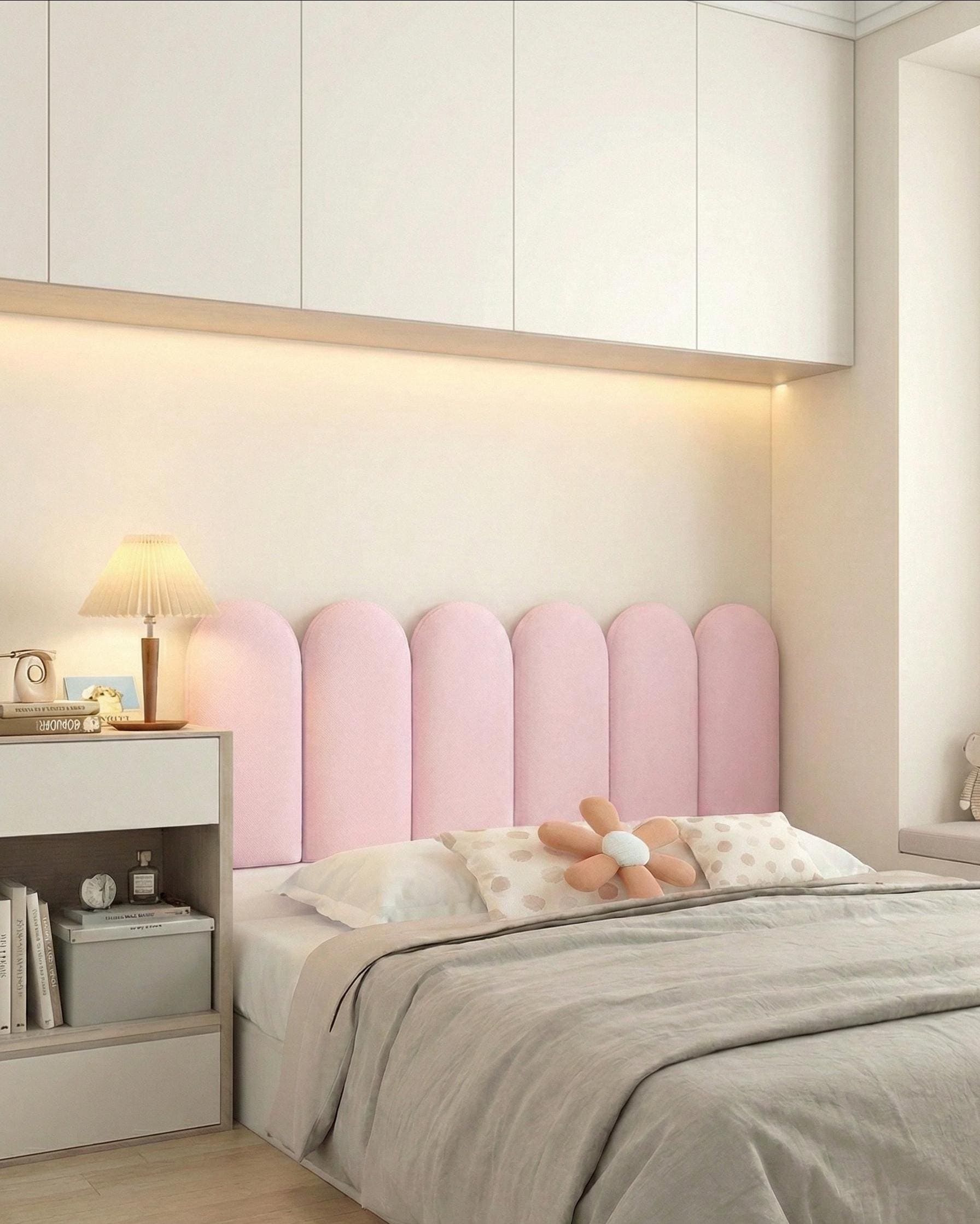 Pink Vinyl Nursery Headboard, Padded Wall Decor Panel, Kids Bedroom...