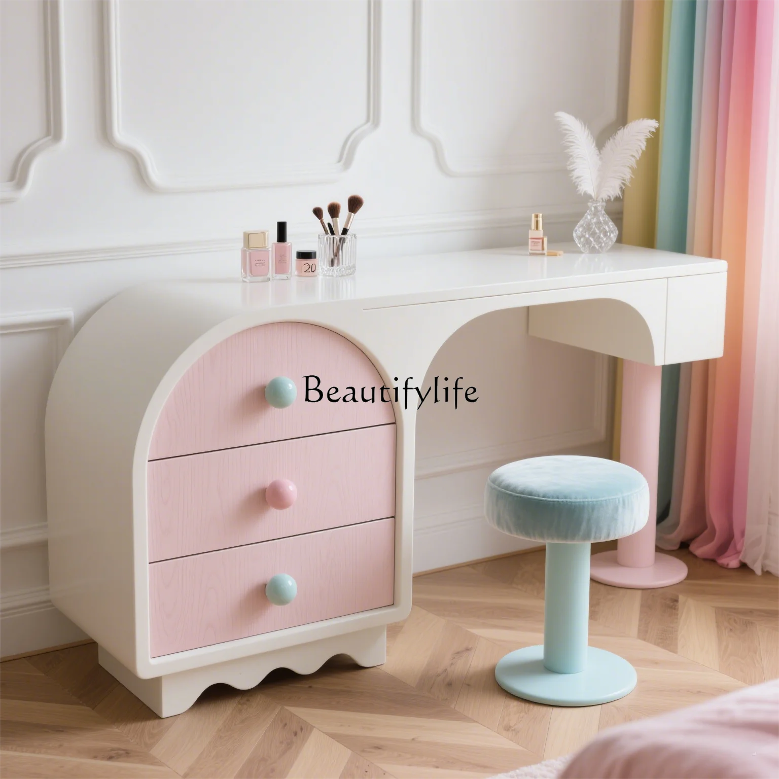 XX39New cream style pink solid wood chest integrated bedroom makeup table storage cabinet