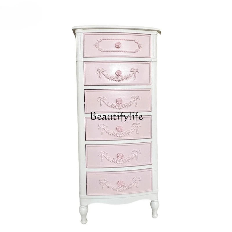 European-style French Chest of Drawers for Living Room and Bedroom Storage Princess Pink Bedside Cab...