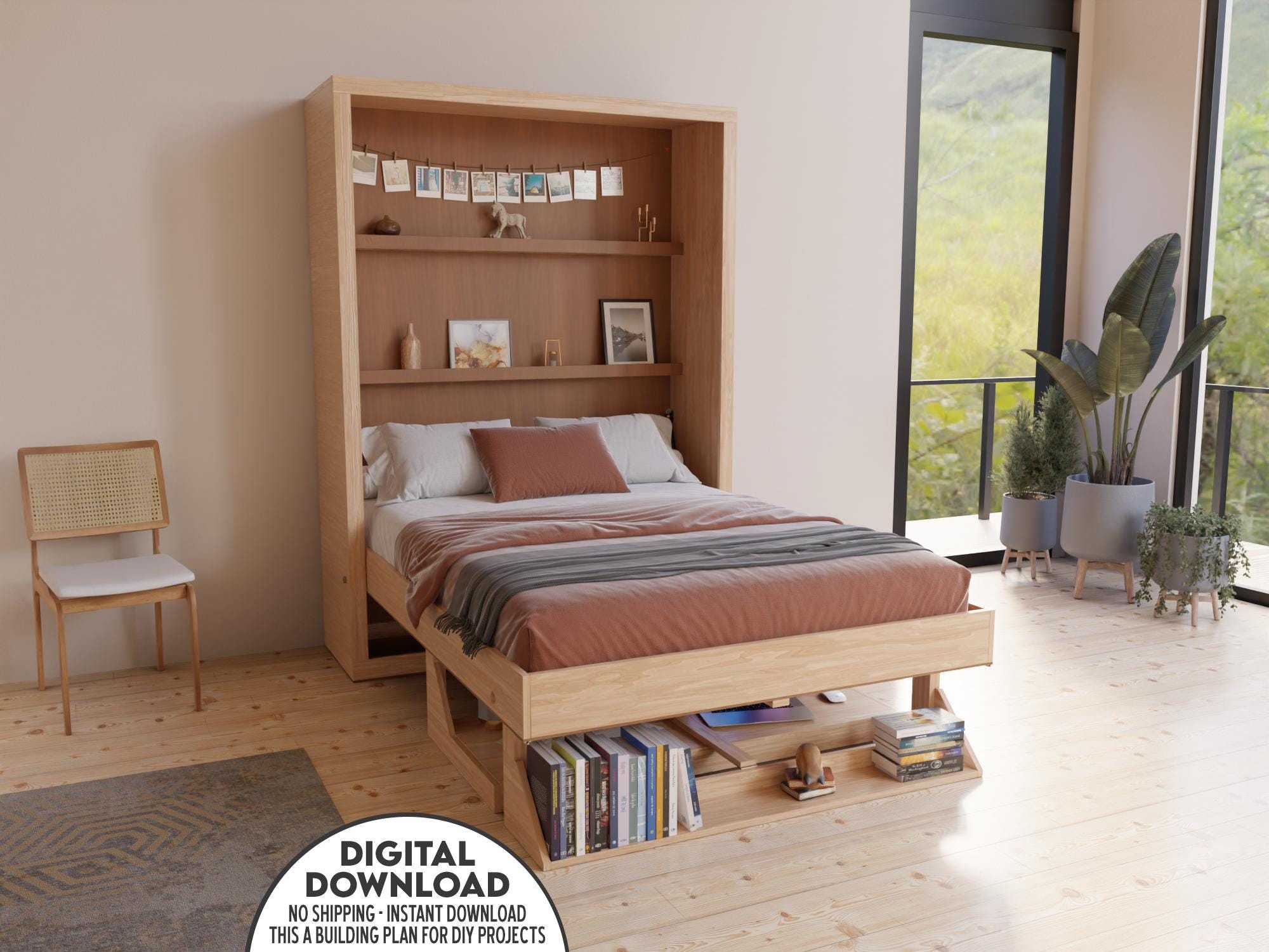 DIY Murphy Bed Plan: All Sizes with Desk & Shelves Vertical (PD...