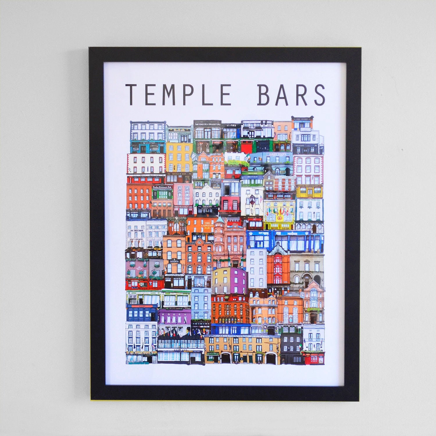 Temple Bars pub illustration, Dublin Pubs, Irish Gift, Illustration...