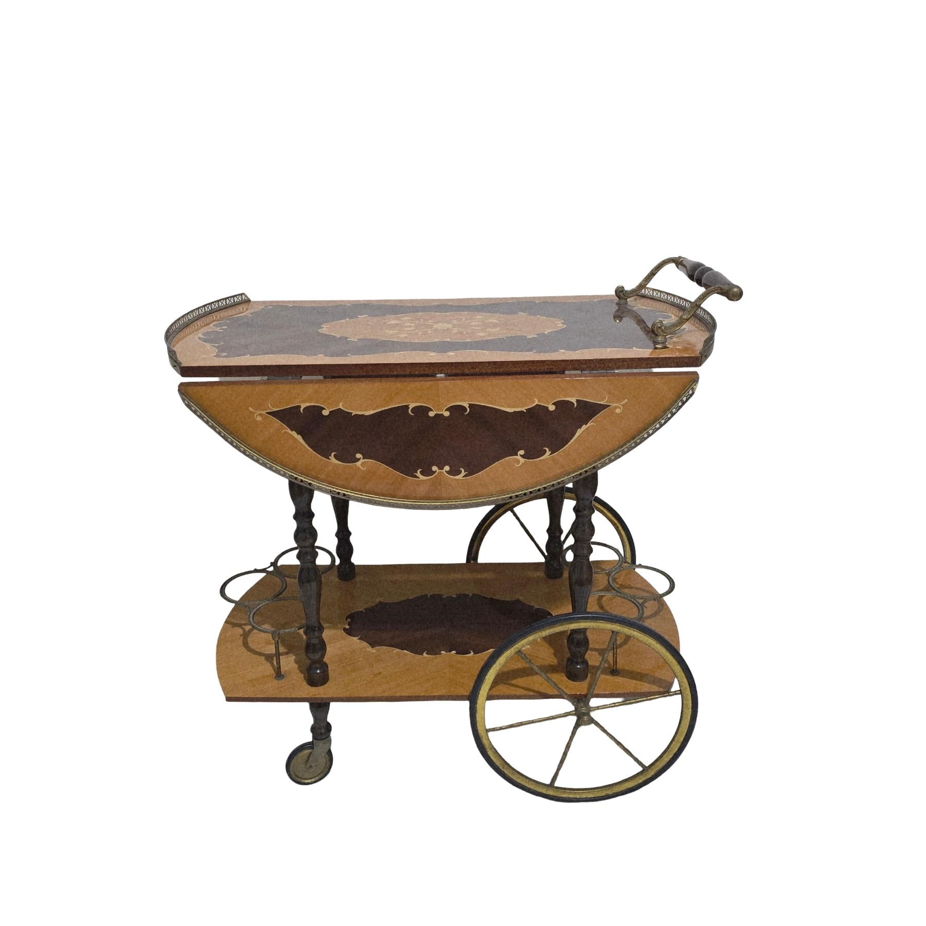 Vintage Mid-Century modern Italian Marquetry Wood Bar Cart with Fol...