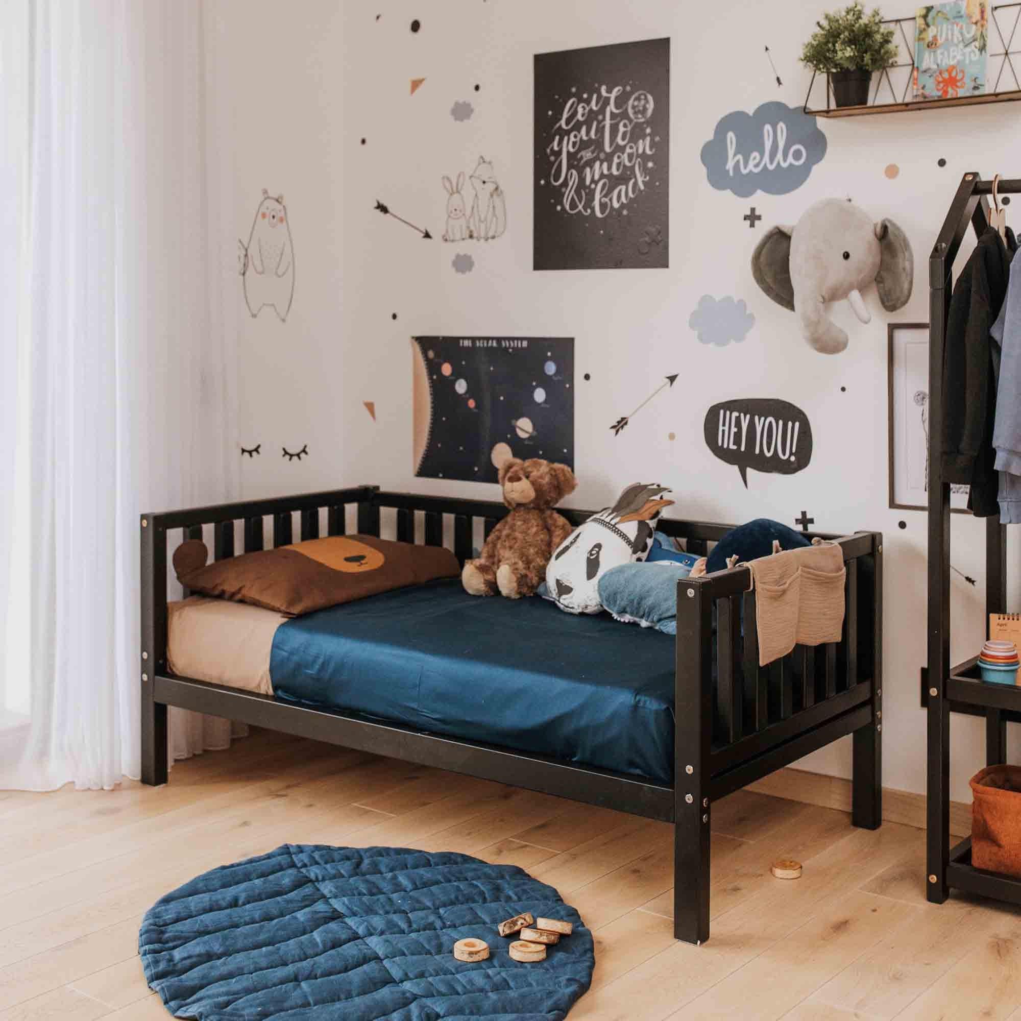 Platform bed with rails Montessori bed with fence, Childrens bed on...