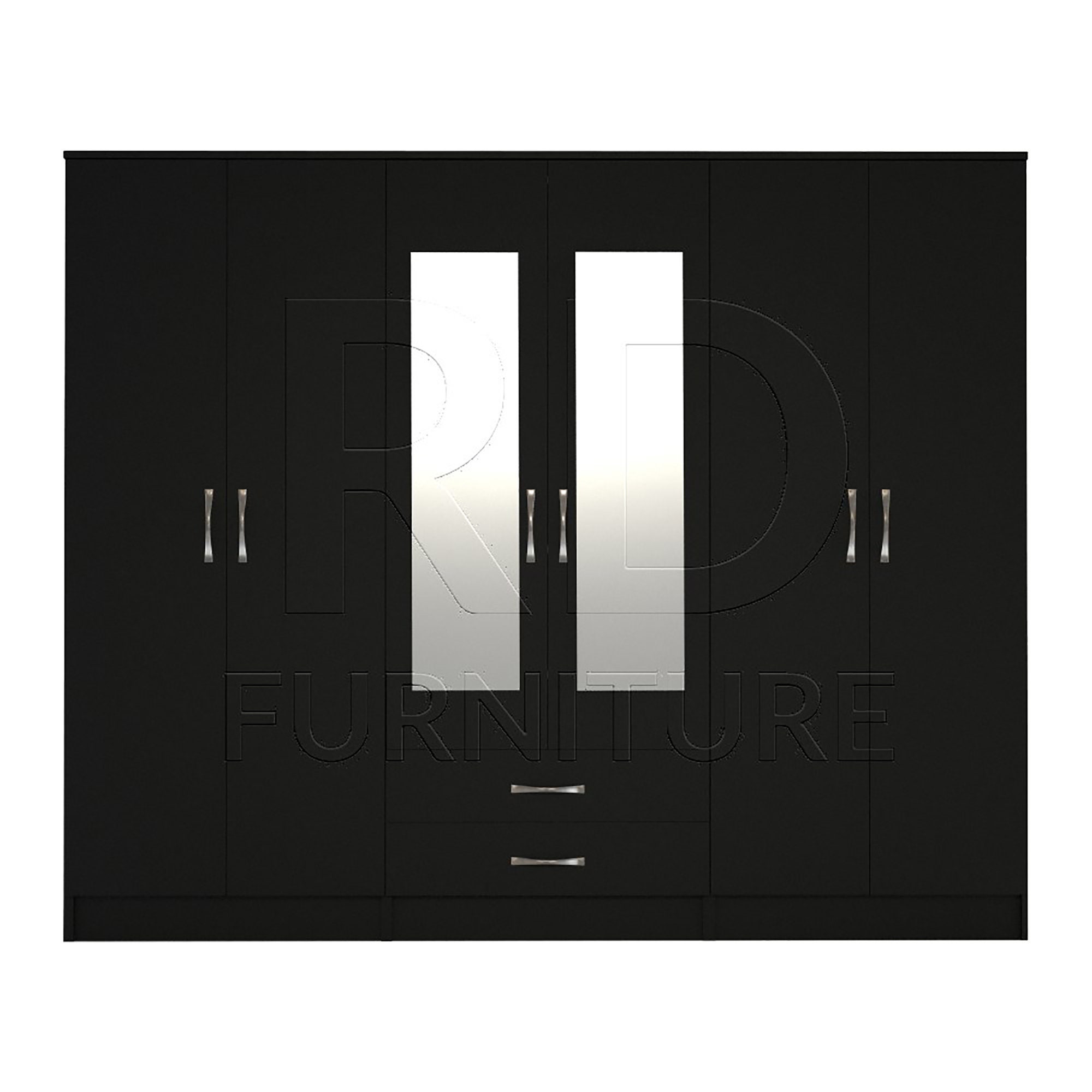 Black Wardrobe, Large Wardrobe Ready assembled Classic 6 Door Mirro...
