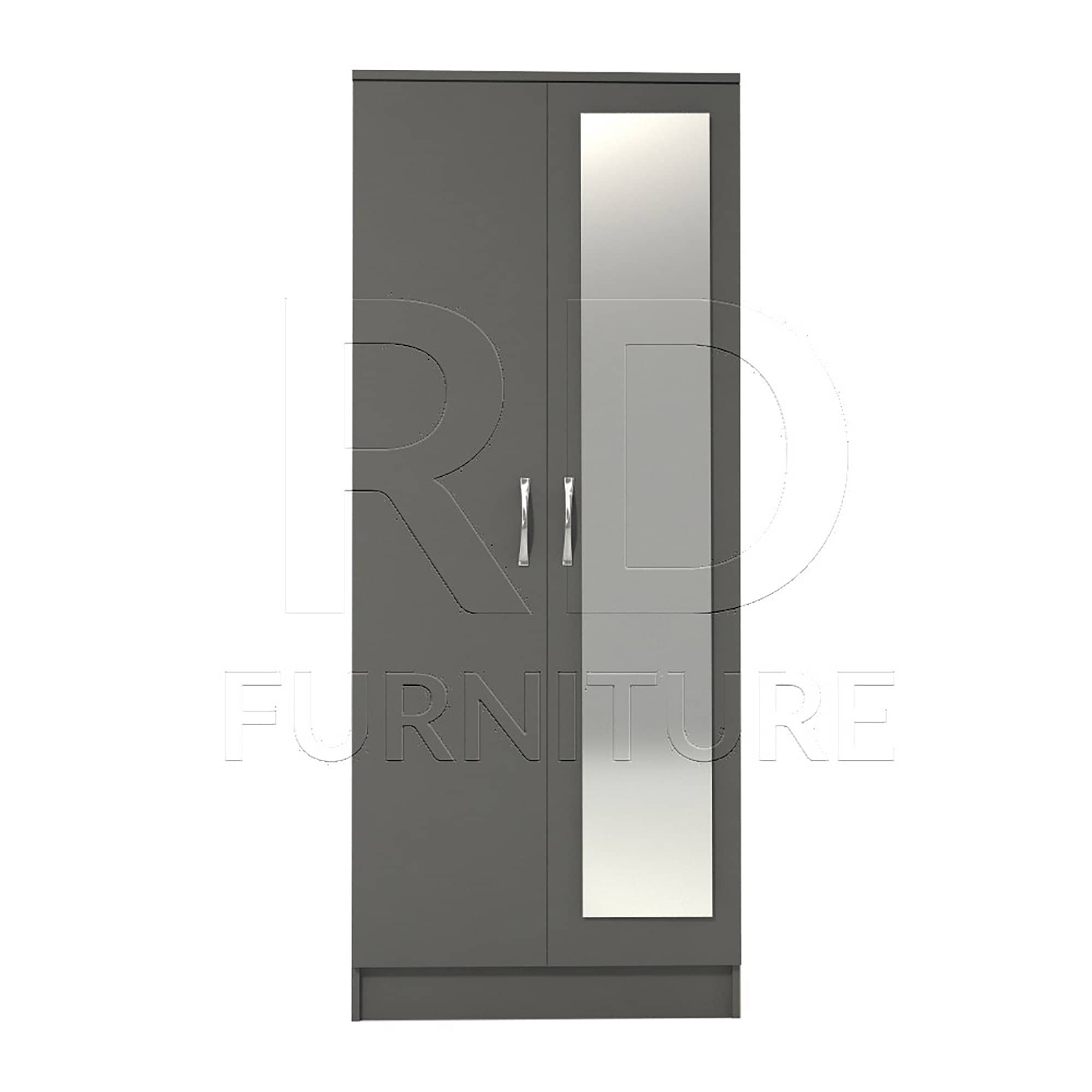 Grey Wardrobe, Double Wardrobe With Mirror Ready assembled Classic ...