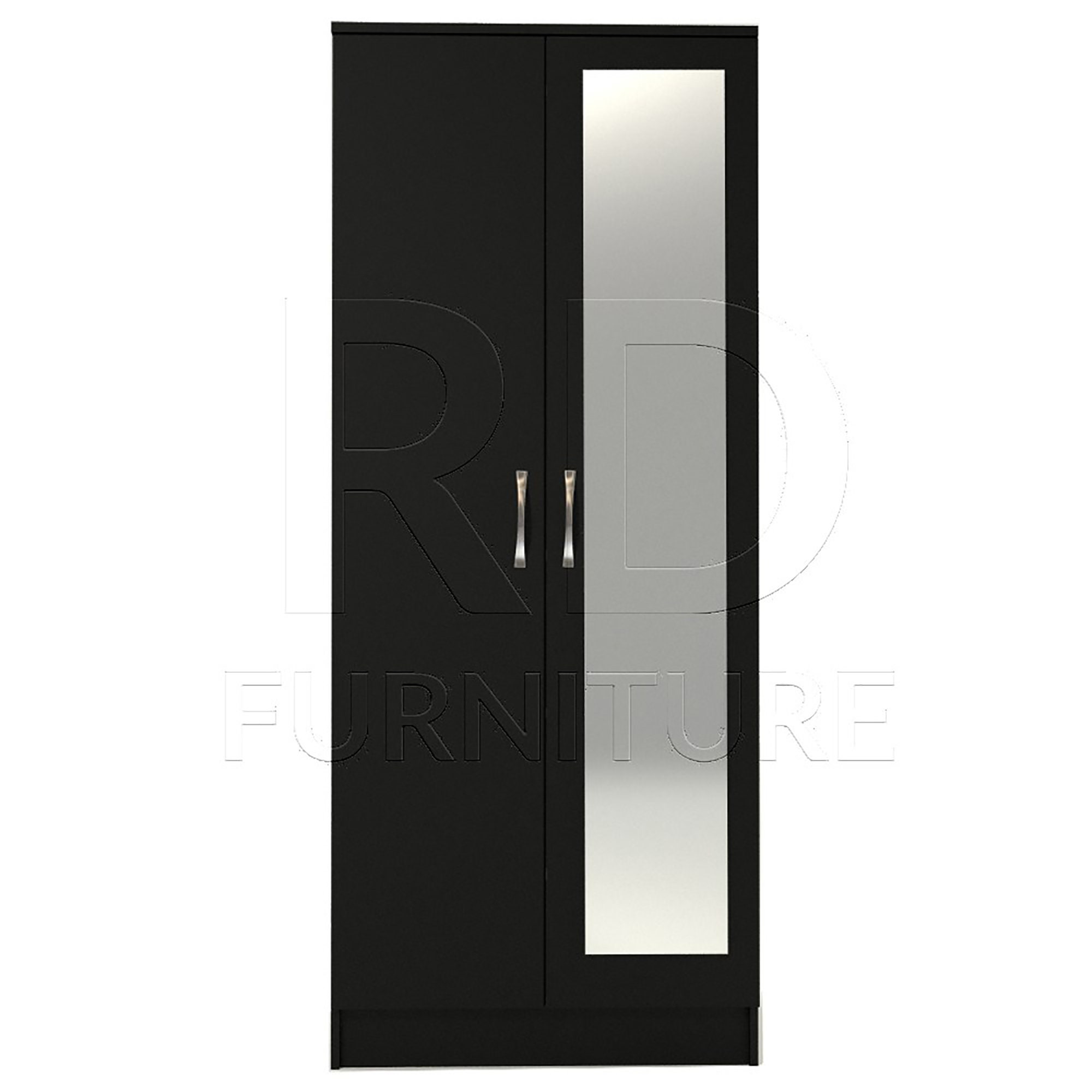 Black Wardrobe, Double Wardrobe With Mirror Ready assembled Classic...