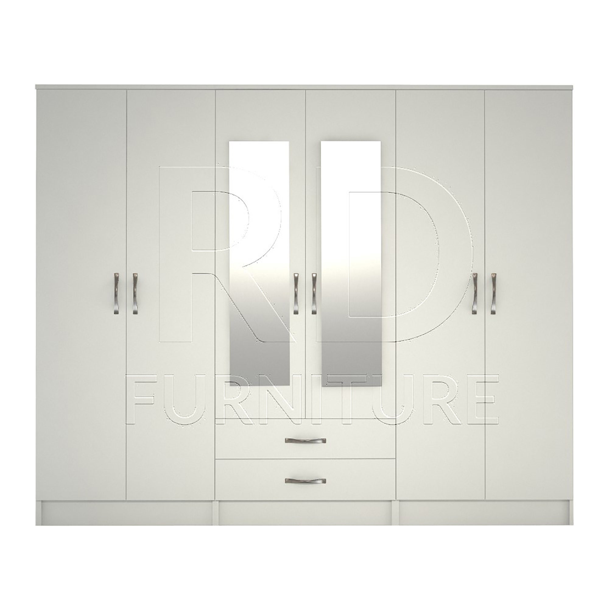 Classic clean minimalistic design. Large 6 door wardrobe with 2 drawers with smooth runners and 2 mi...