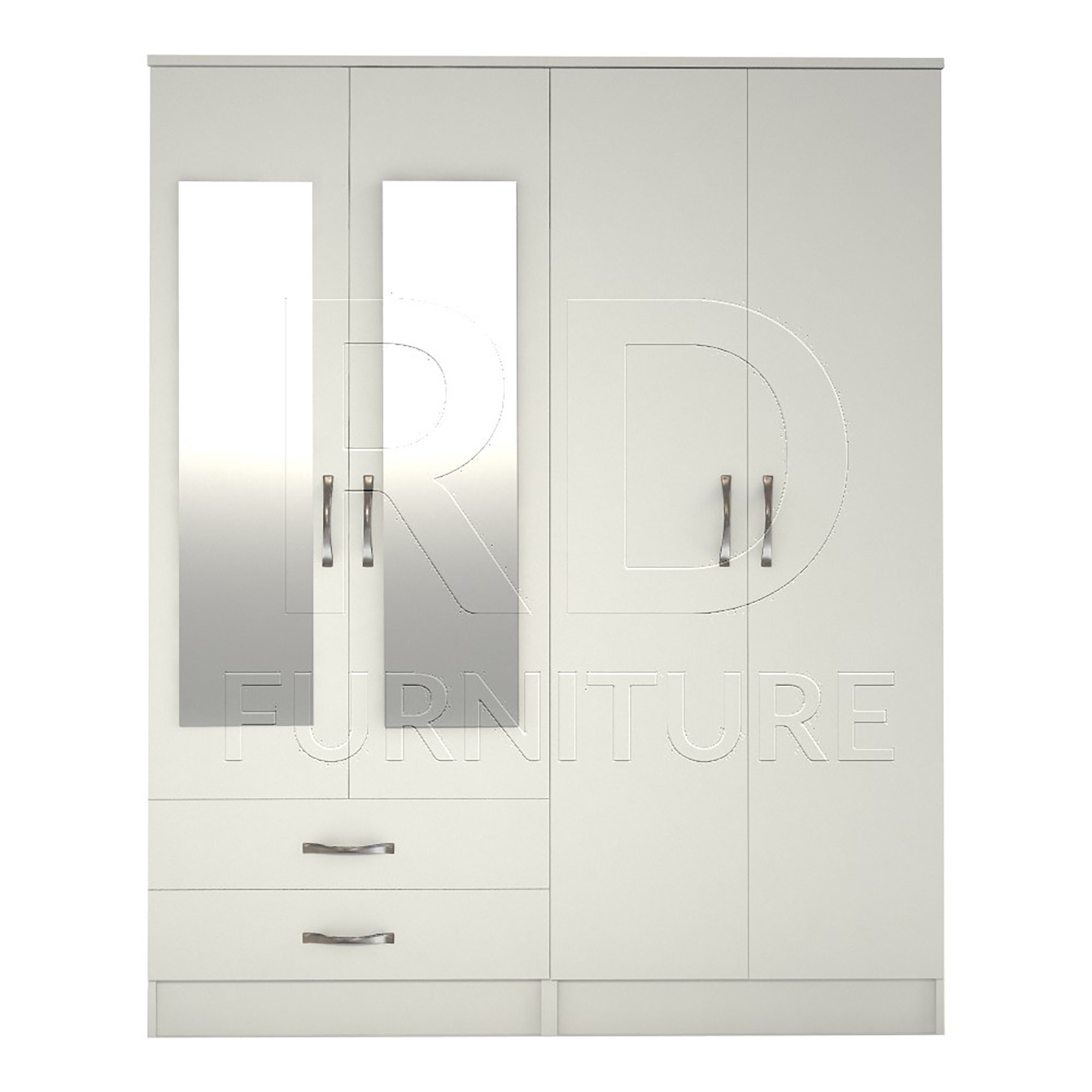 White Wardrobe, Large Wardrobe Ready assembled Classic 4 Door 2 Dra...