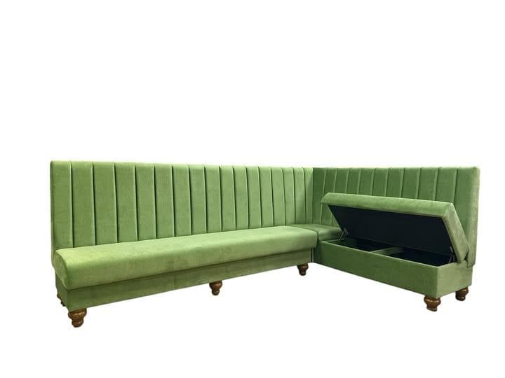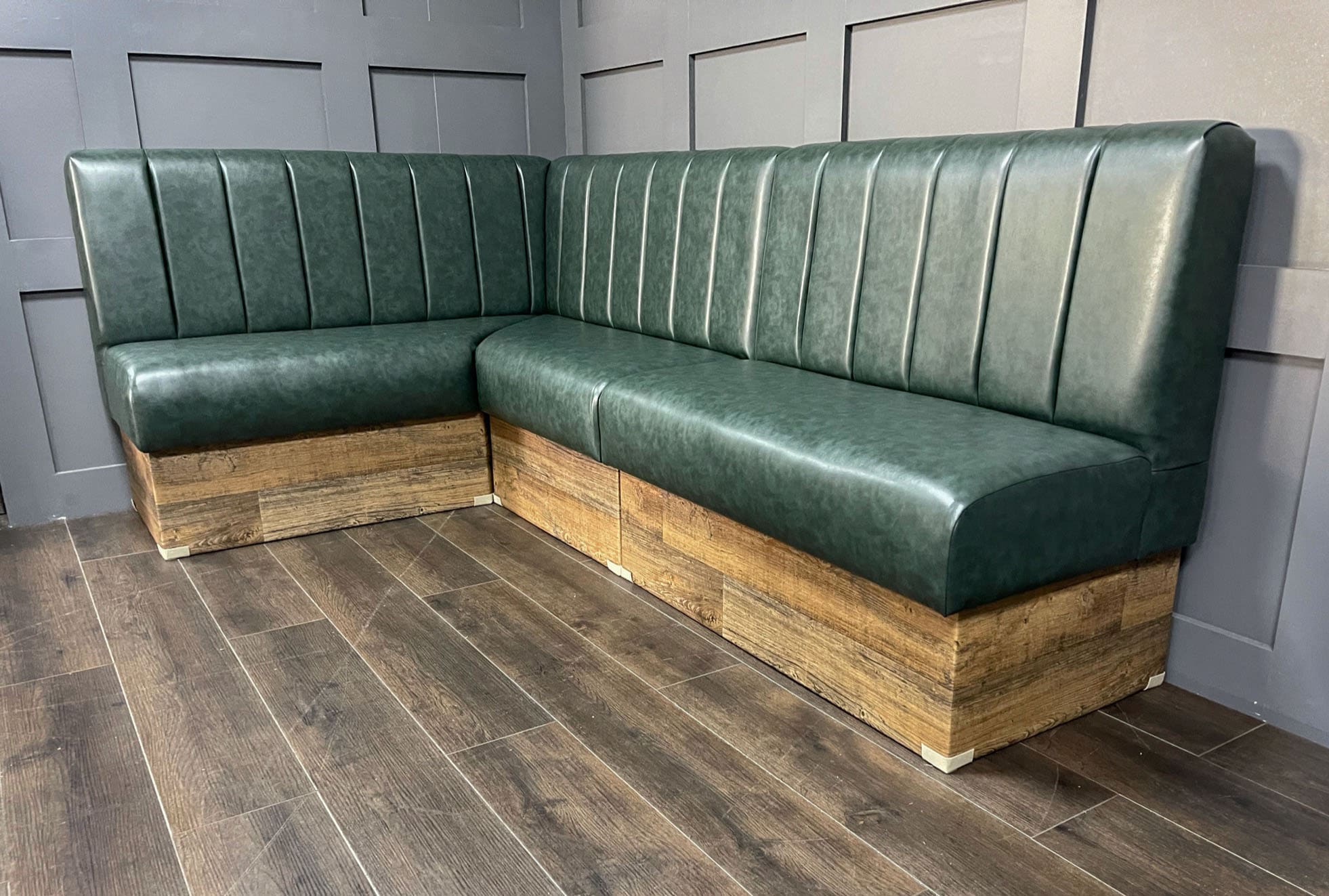 L Shaped Green Fluted Back Banquette Bench Booth Seating - Ideal fo...
