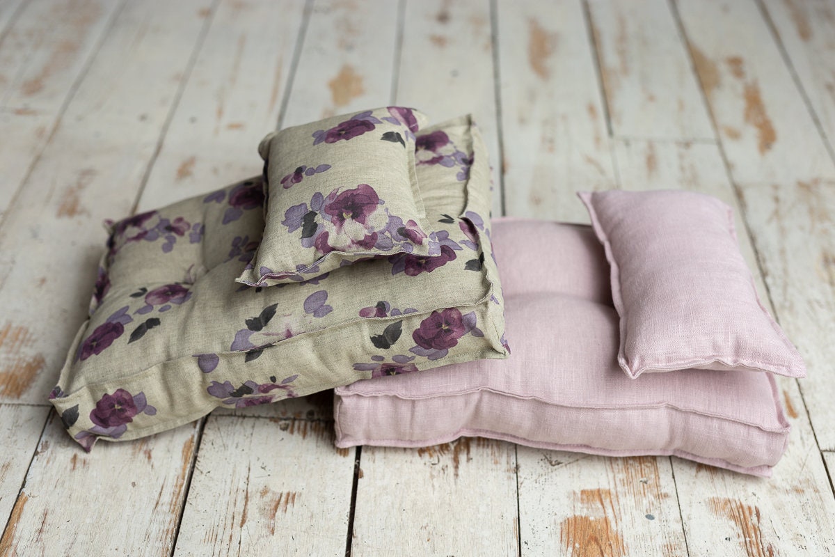 "Newborn linen Posing Bed and Pillow, Newborn Floor Poser Pillow, Newborn Bedding Prop, Newborn...