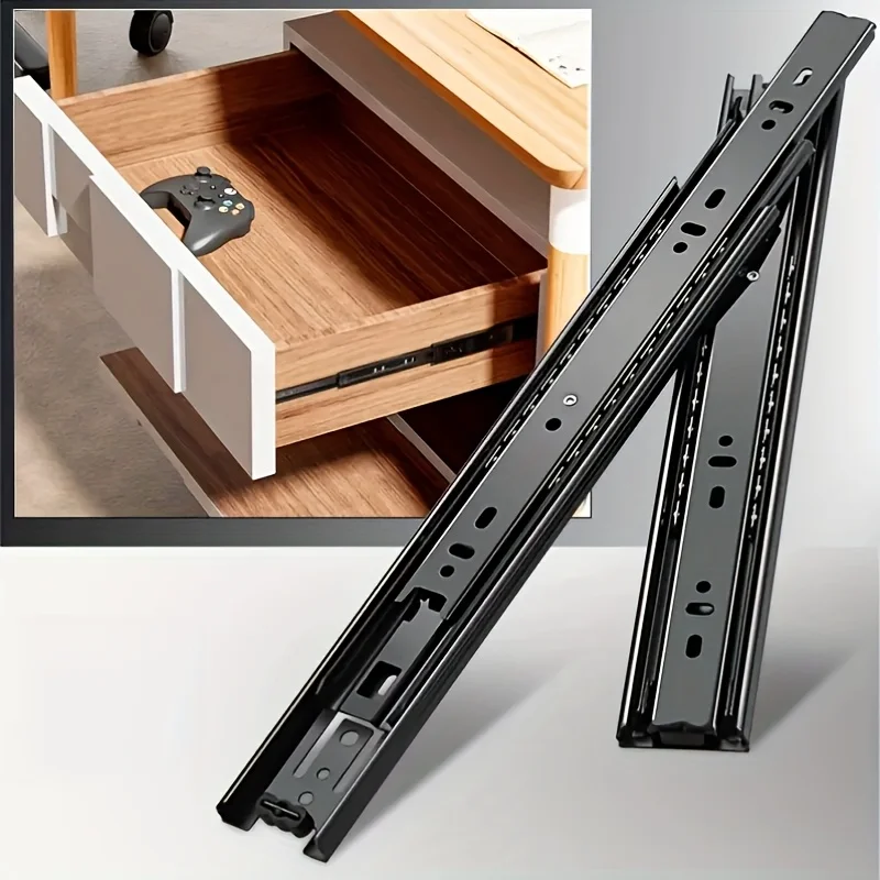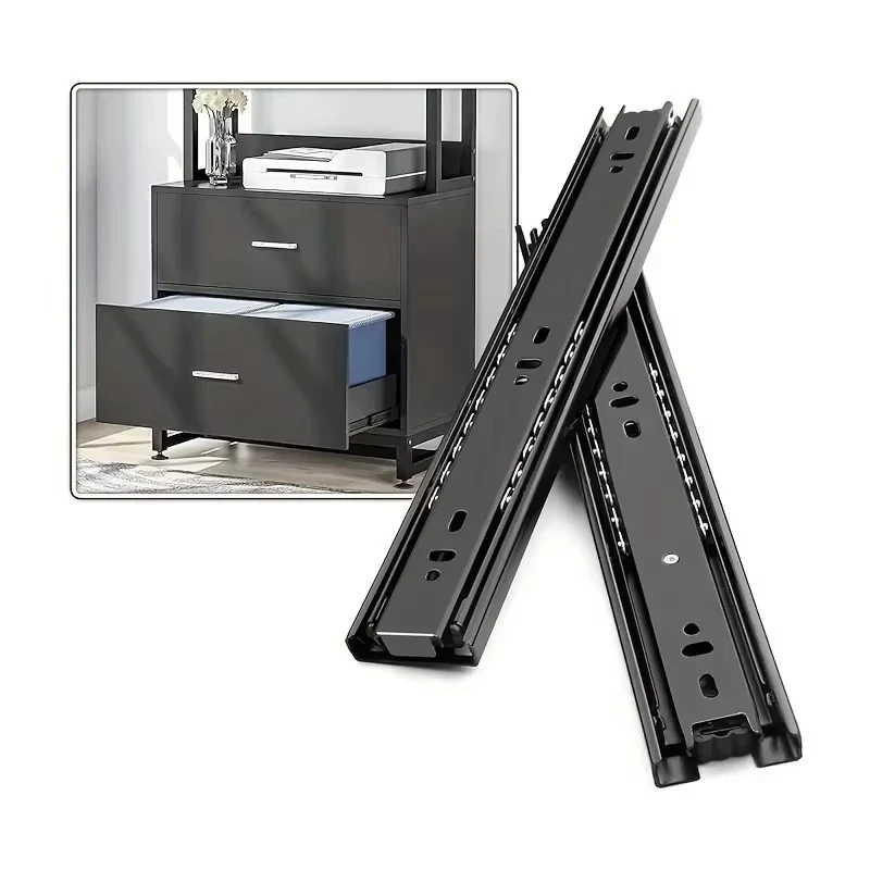 Cold Rolled Steel Hydraulic Damping Silent Three-Section Wardrobe Drawer Slides with Guide Rail Hard...