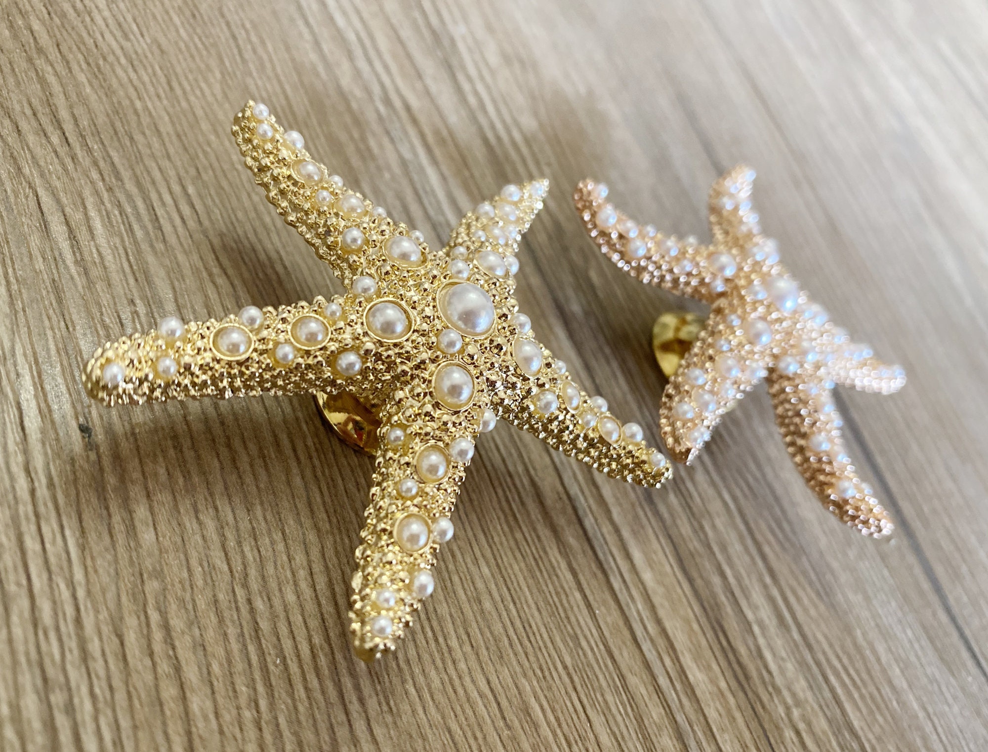 Paerl Starfish Drawer knobs / Furniture Knobs Silver with Rope Patt...