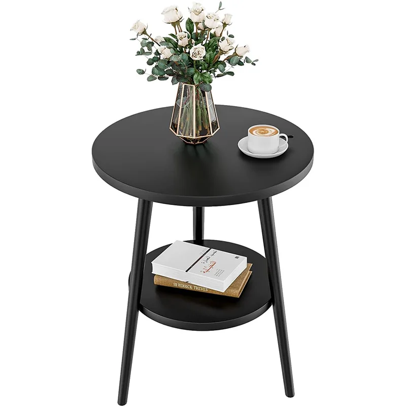 Side Table Round Bedside Table 2-Tier White Nightstand Modern End Table Coffee End Table for Living ...