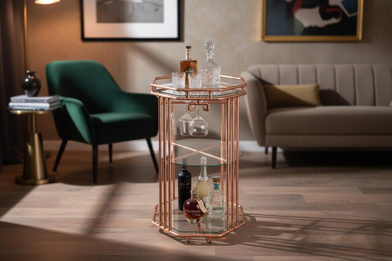Copper Art Deco Bar Cart: Bespoke Drinks Table