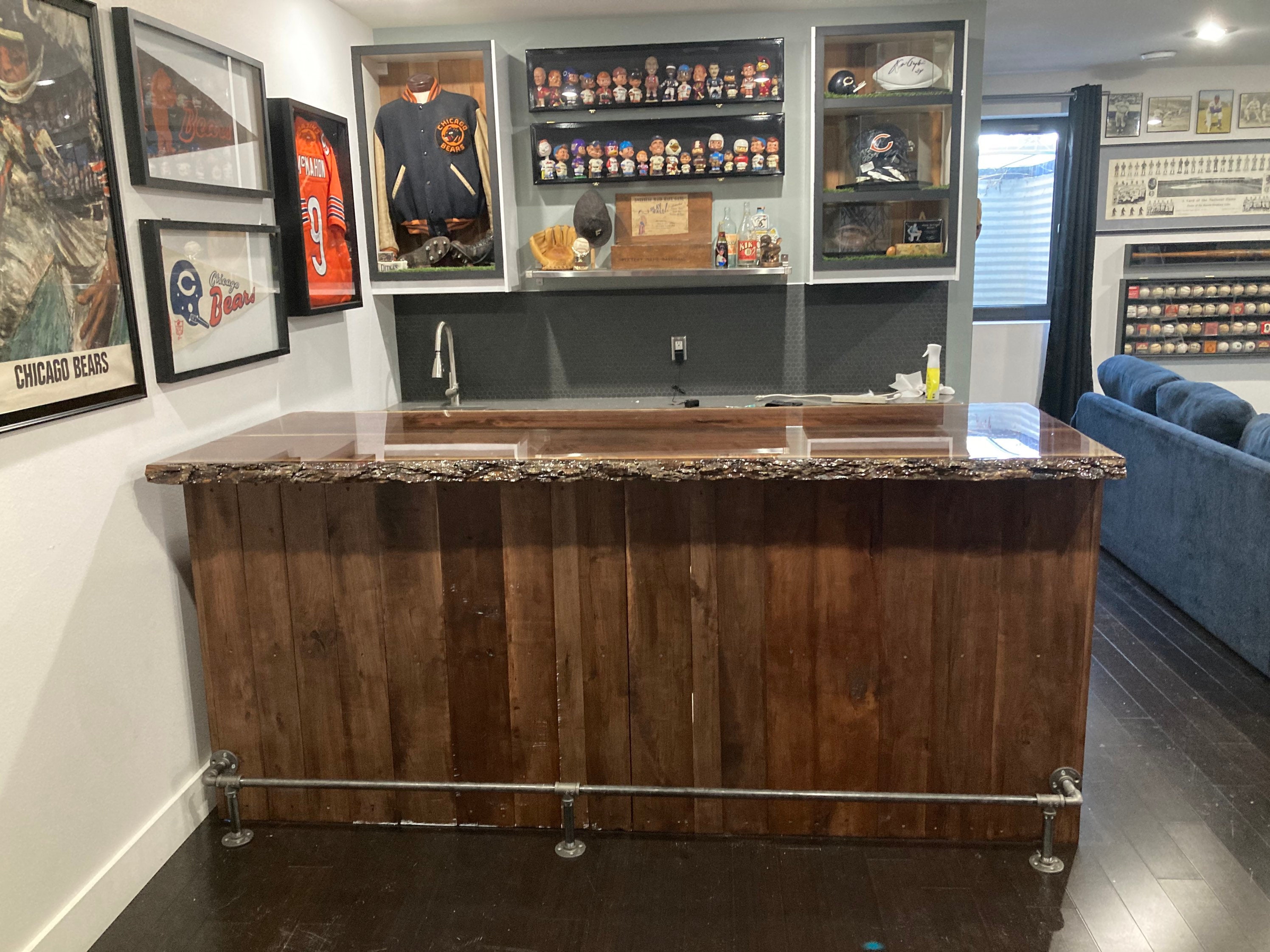 This is an 8ft long bar with a walnut top, with Epoxy finish on the top With walnut boards on the fr...