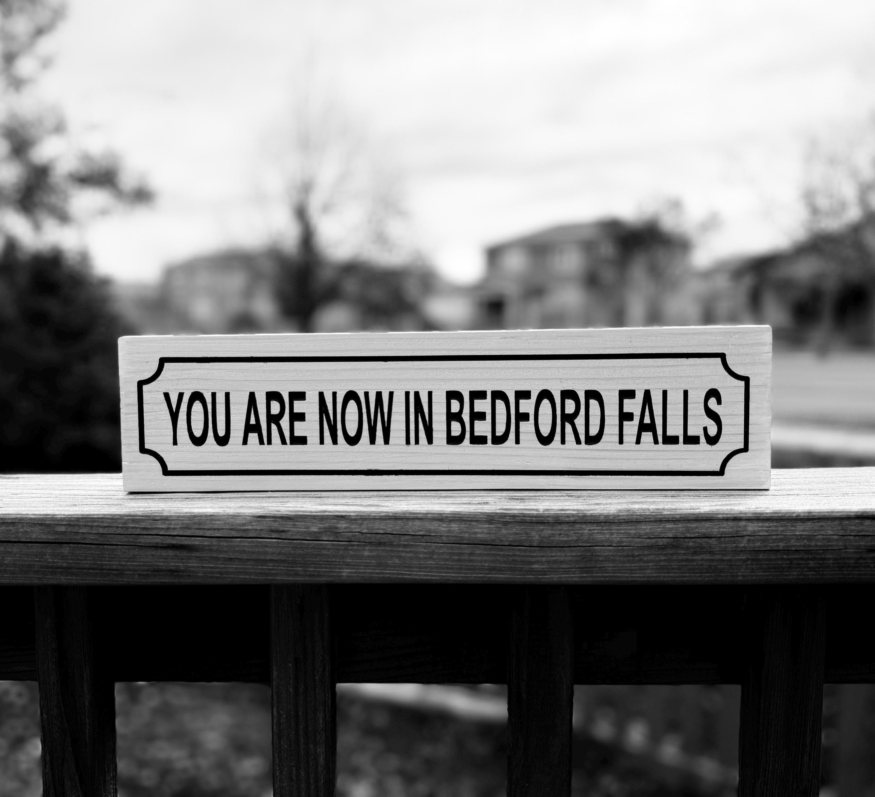 Bedford Falls Sign - It's a Wonderful Life, Carved Wood Mantel Deco...