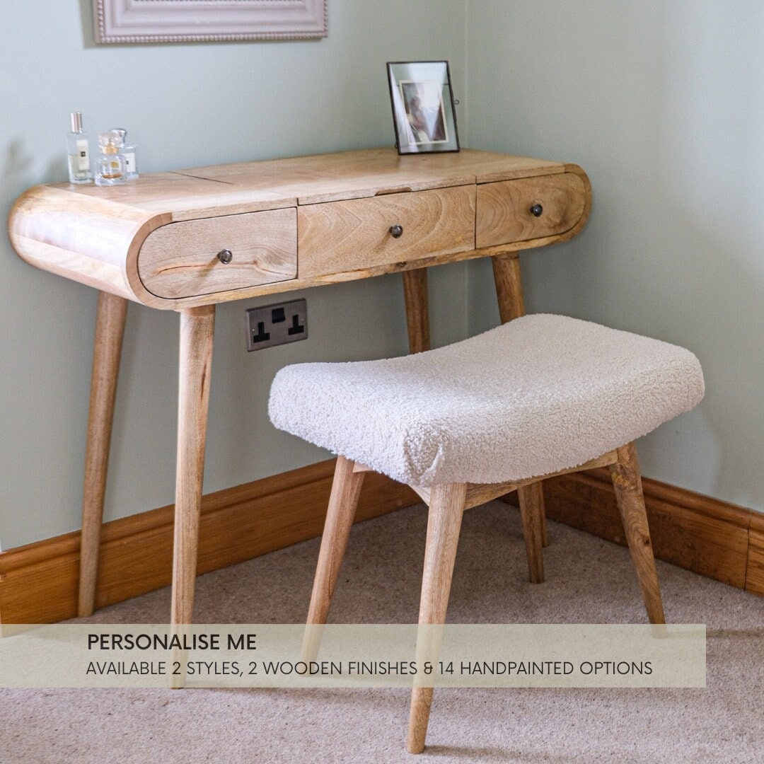 Mango Wood Dressing Table & Boucle Bench Set | Scandi Vanity