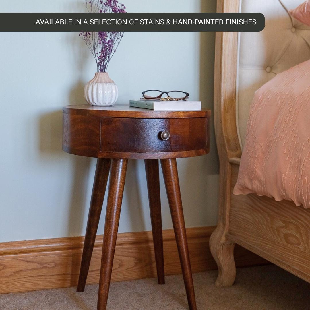- Important Note - Circular bedside tables in a natural and chestnut stain are ready to ship. The se...