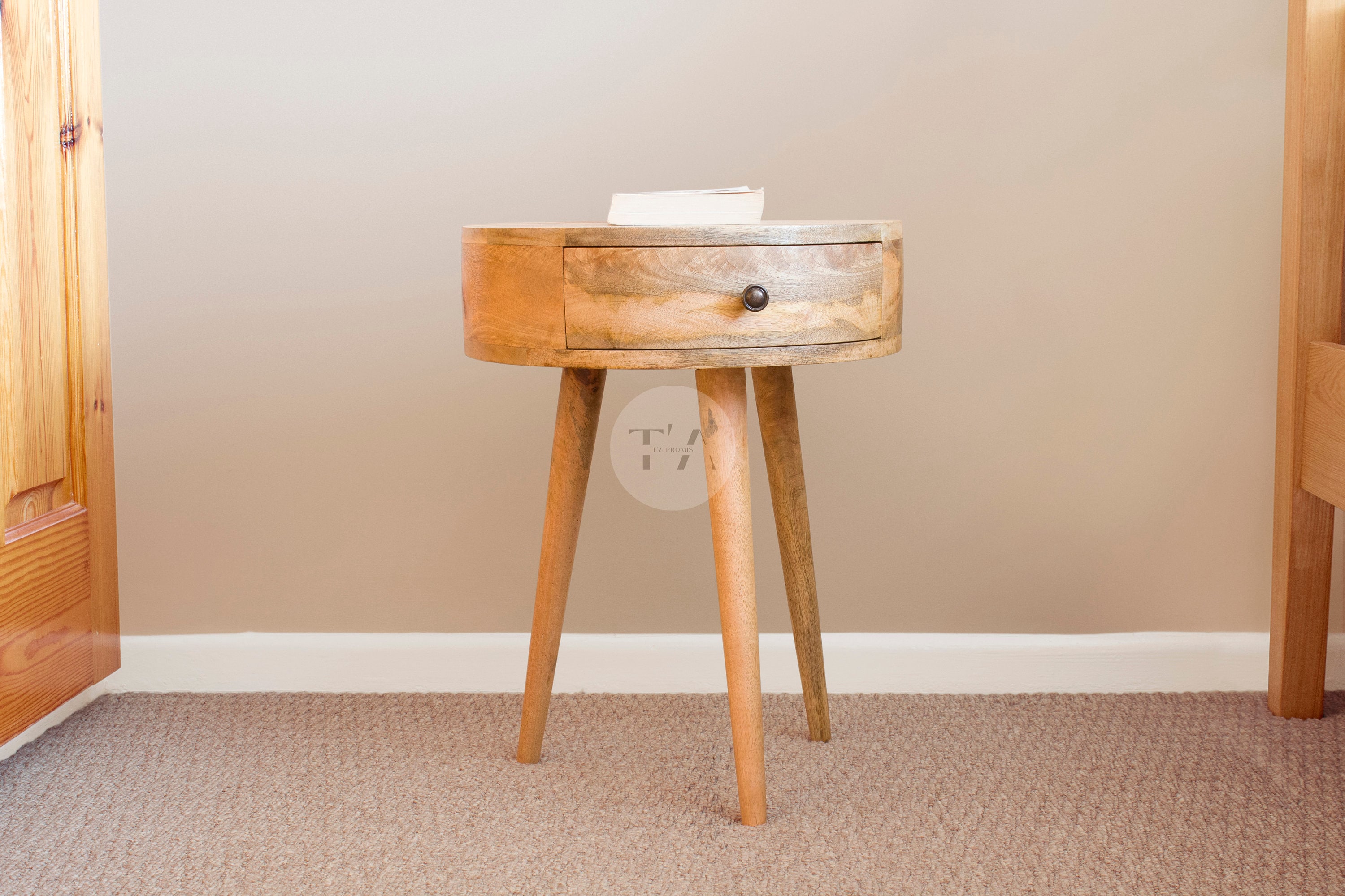 Small Circular Bedside Table Wood * Curved Nightstand Bedside Table...