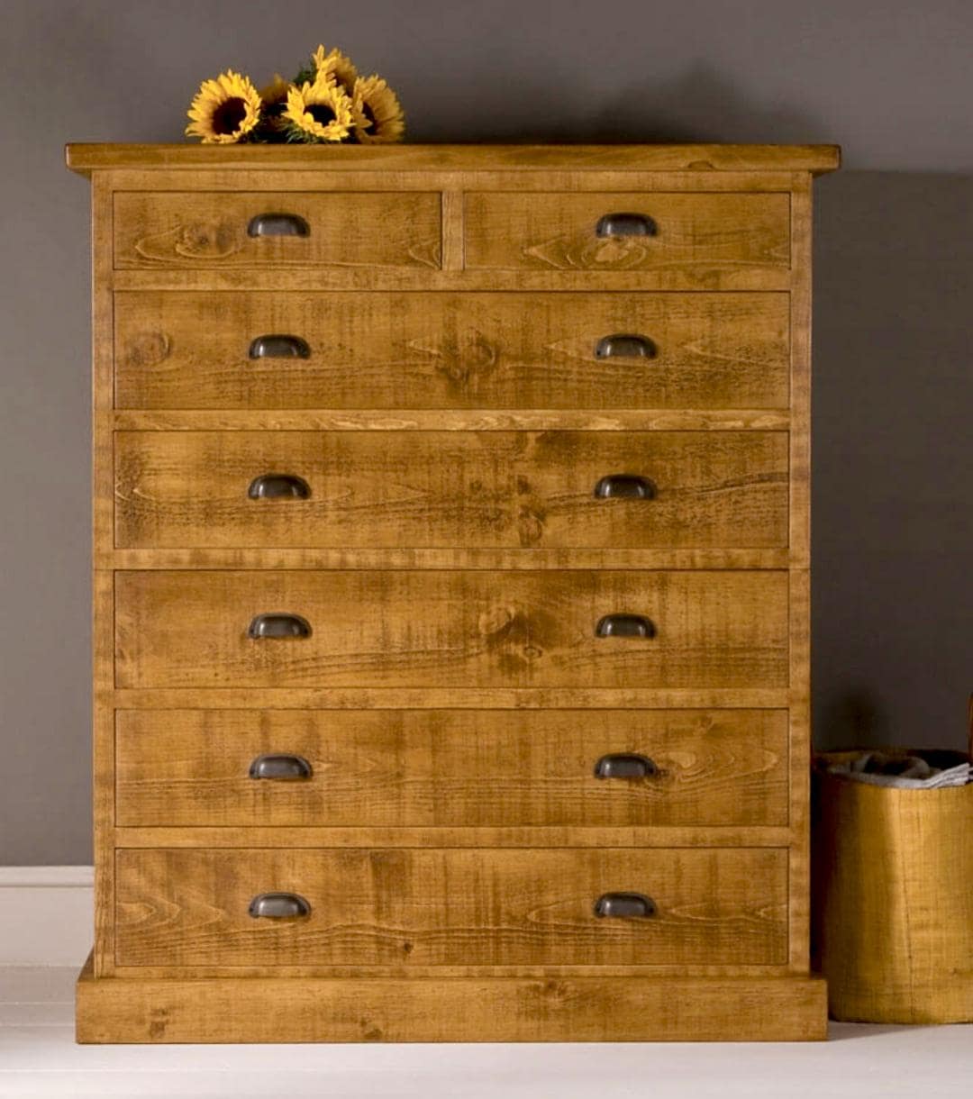 Handmade Solid Wood Chest of Drawers: Rustic Plank Design Beeswax F...