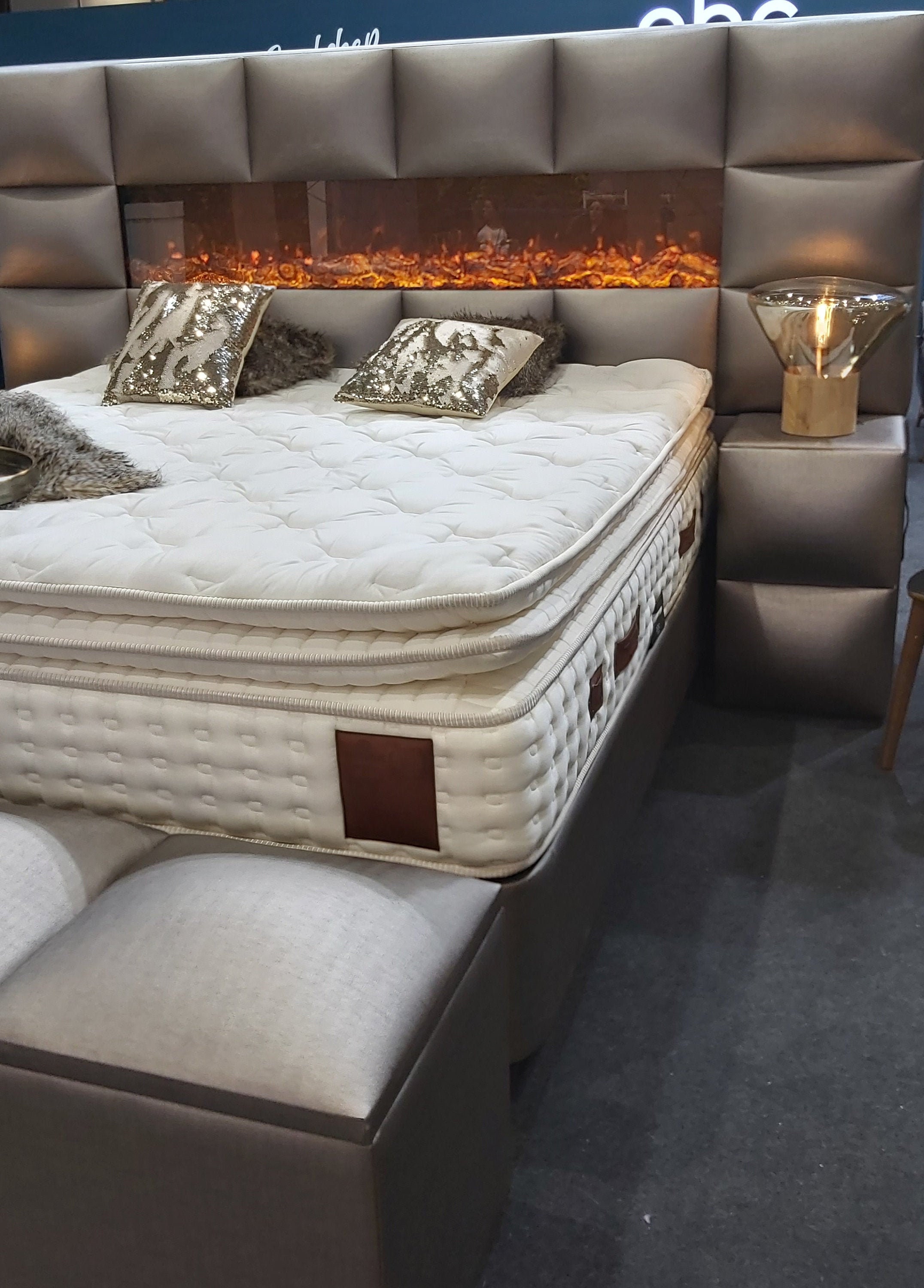 Bed with a fireplace