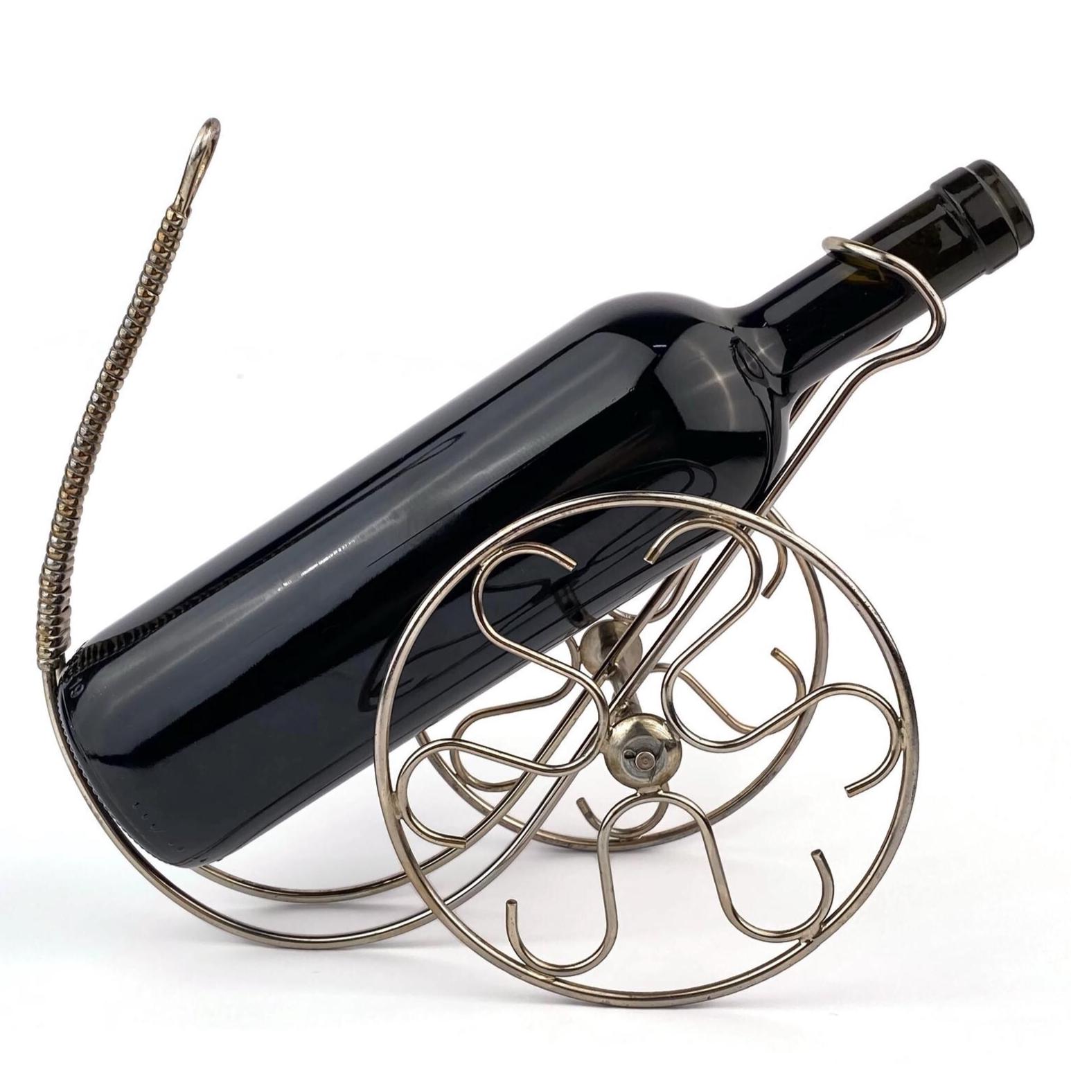 "This addition to Cristiano's Collection is a vintage wine bottle holder made of silver-toned m...