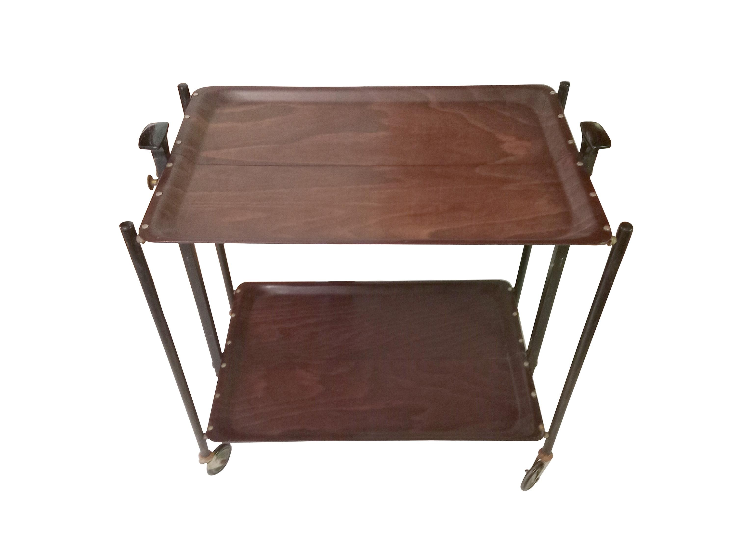 This is a lovely black bar trolley with brow trays. This piece was made in West Germany circa 1960. ...