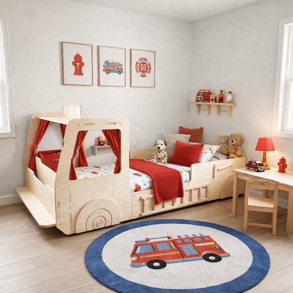 Fire Engine Floor Bed For Child Children's Truck Bed Toddler Fire E...