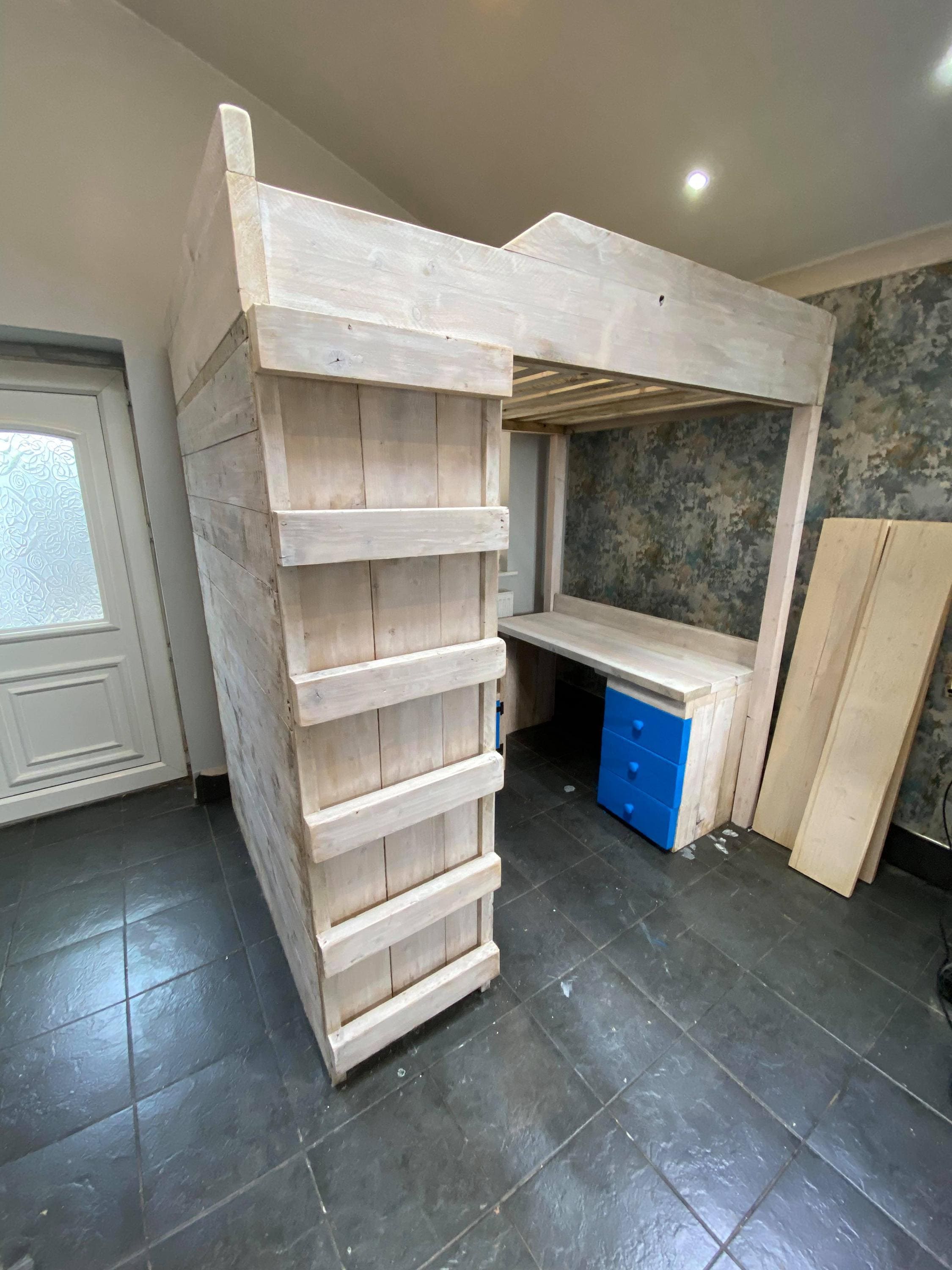 Solid wood rustic mid sleeper Bed, plus wardrobe and desk