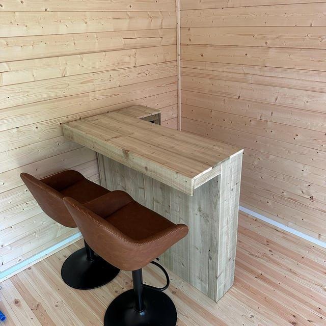 L-Shaped Corner Bar:.Tanalised Wood Reception Desk, Drinks server