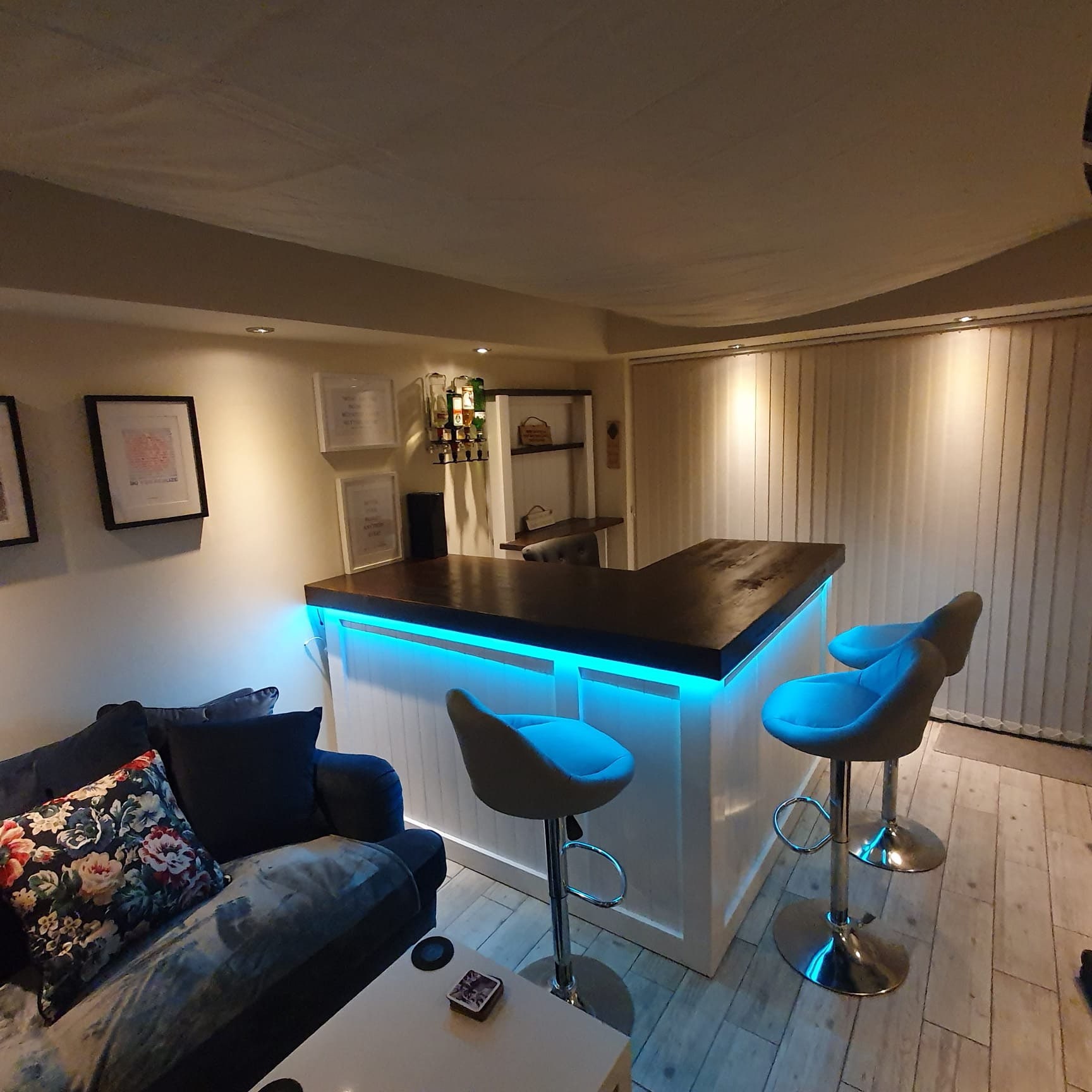 Home bar corner bar option made with scaffolding boards and recycled wood fitted with colour change ...